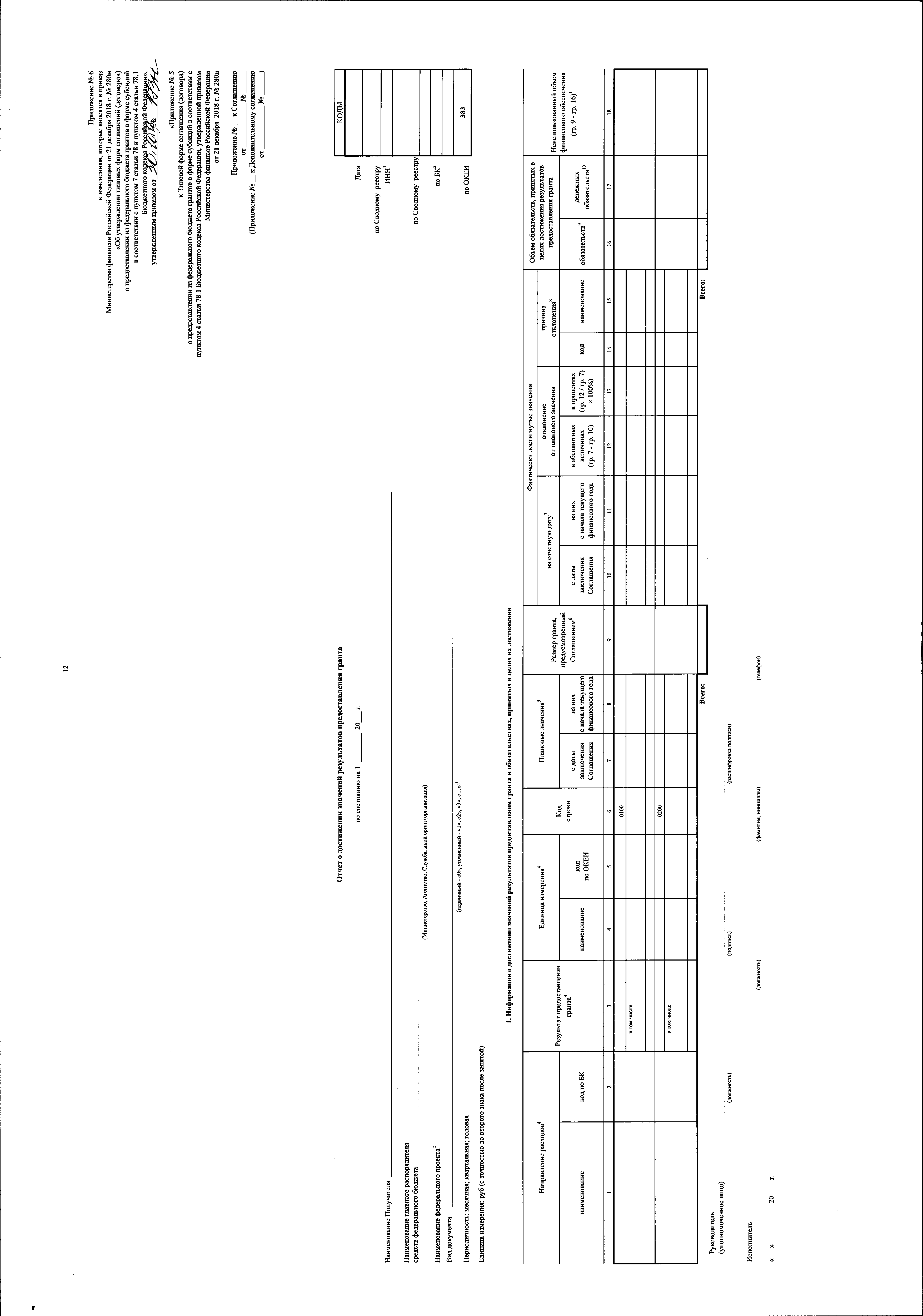 "О внесении изменений в приказ Министерства финансов Российской Федерации от 21 декабря 2018 г. № 280н "Об утверждении типовых форм соглашений (договоров) о предоставлении из федерального бюджета грантов в форме субсидий в соответствии с пунктом 7 статьи 78 и пунктом 4 статьи 78.1 Бюджетного кодекса Российской Федерации"