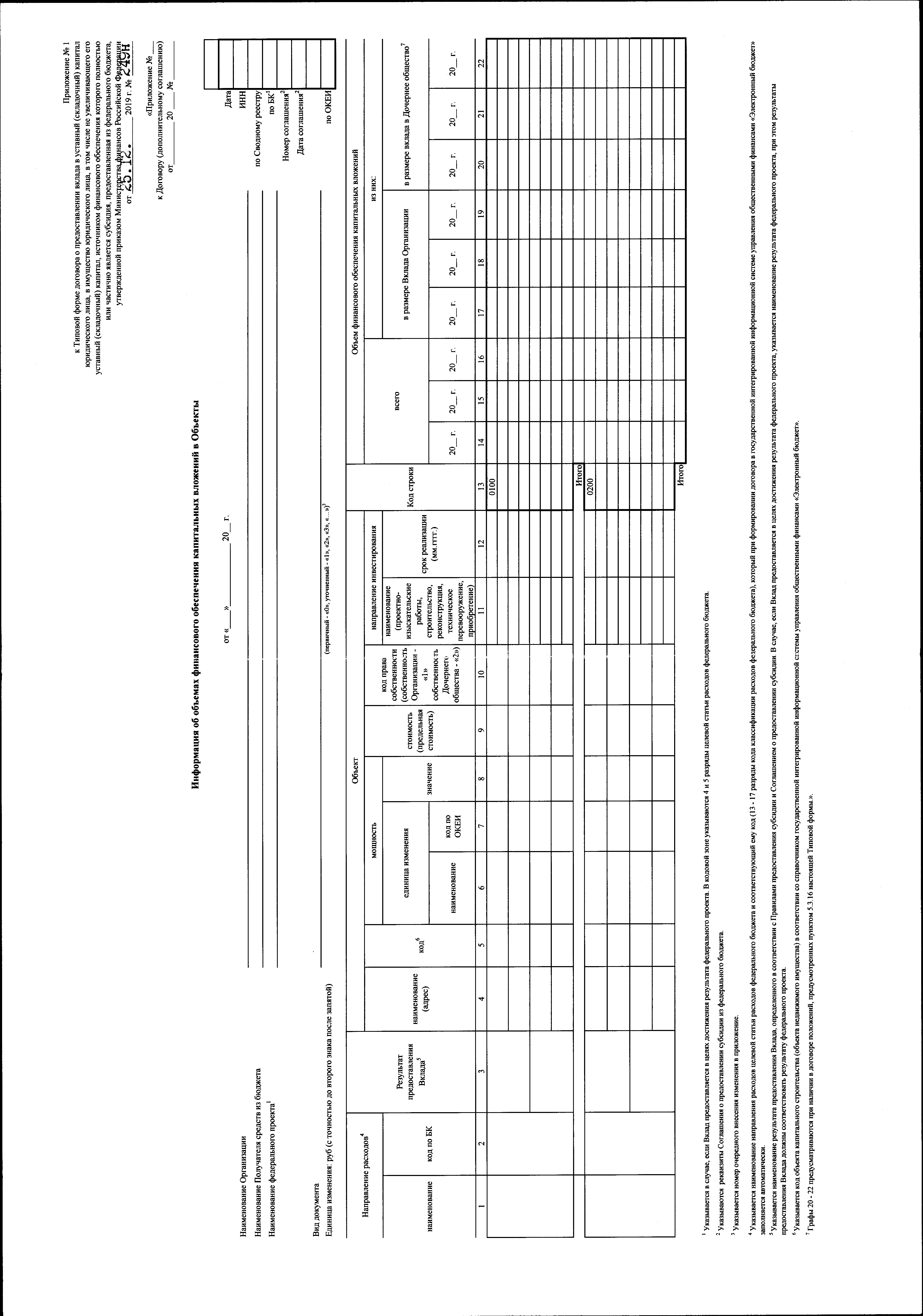 "Об утверждении Типовой формы договора о предоставлении вклада в уставный (складочный) капитал юридического лица, в имущество юридического лица, в том числе не увеличивающего его уставный (складочный) капитал, источником финансового обеспечения которого полностью или частично является субсидия, предоставленная из федерального бюджета"