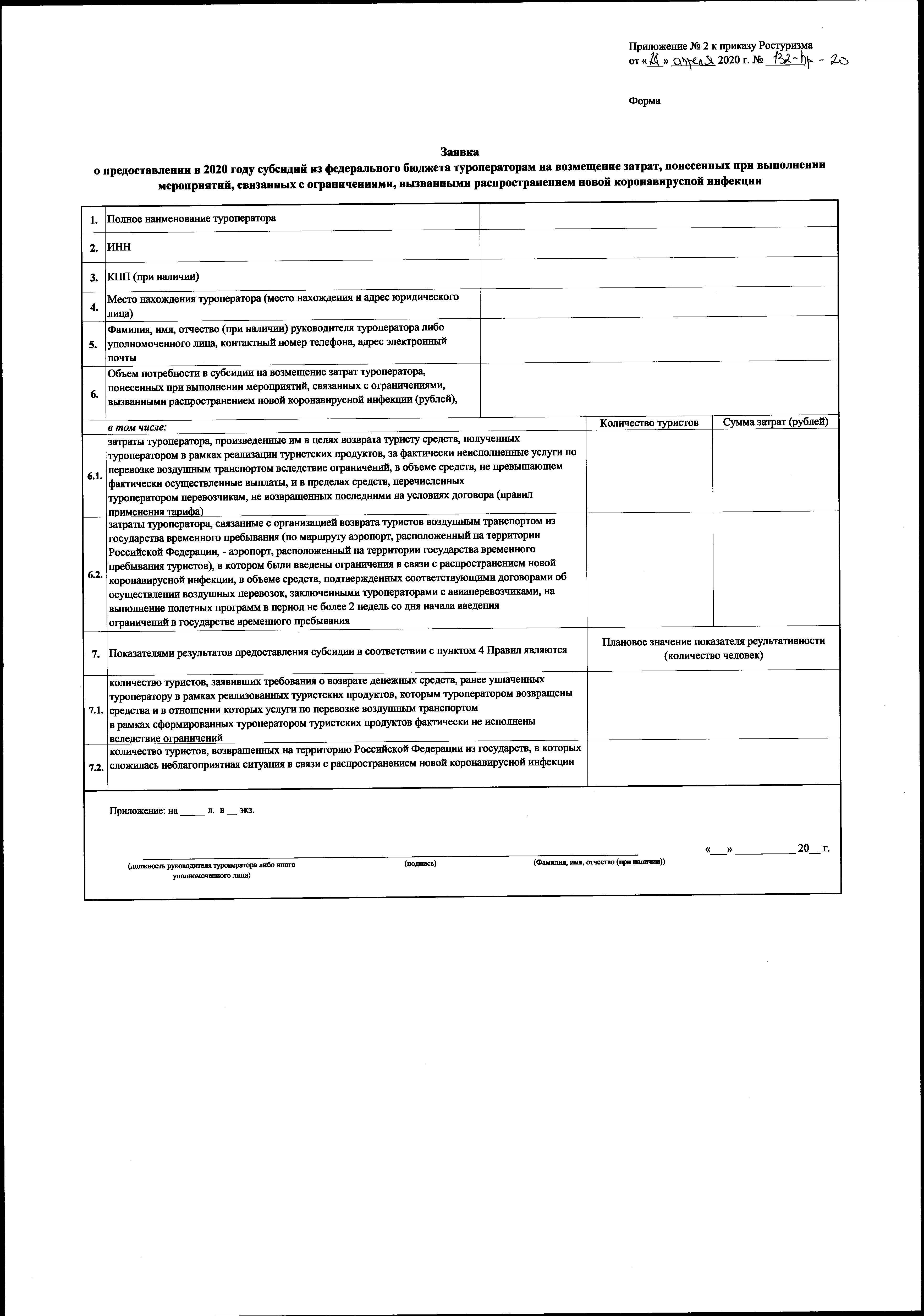 Приказ Федерального агентства по туризму от 28.04.2020 № 132-Пр-20