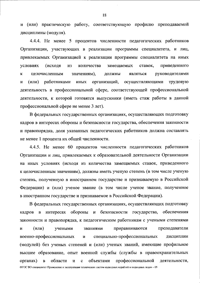 "Об утверждении федерального государственного образовательного стандарта высшего образования - специалитет по специальности 26.05.04 Применение и эксплуатация технических систем надводных кораблей и подводных лодок"