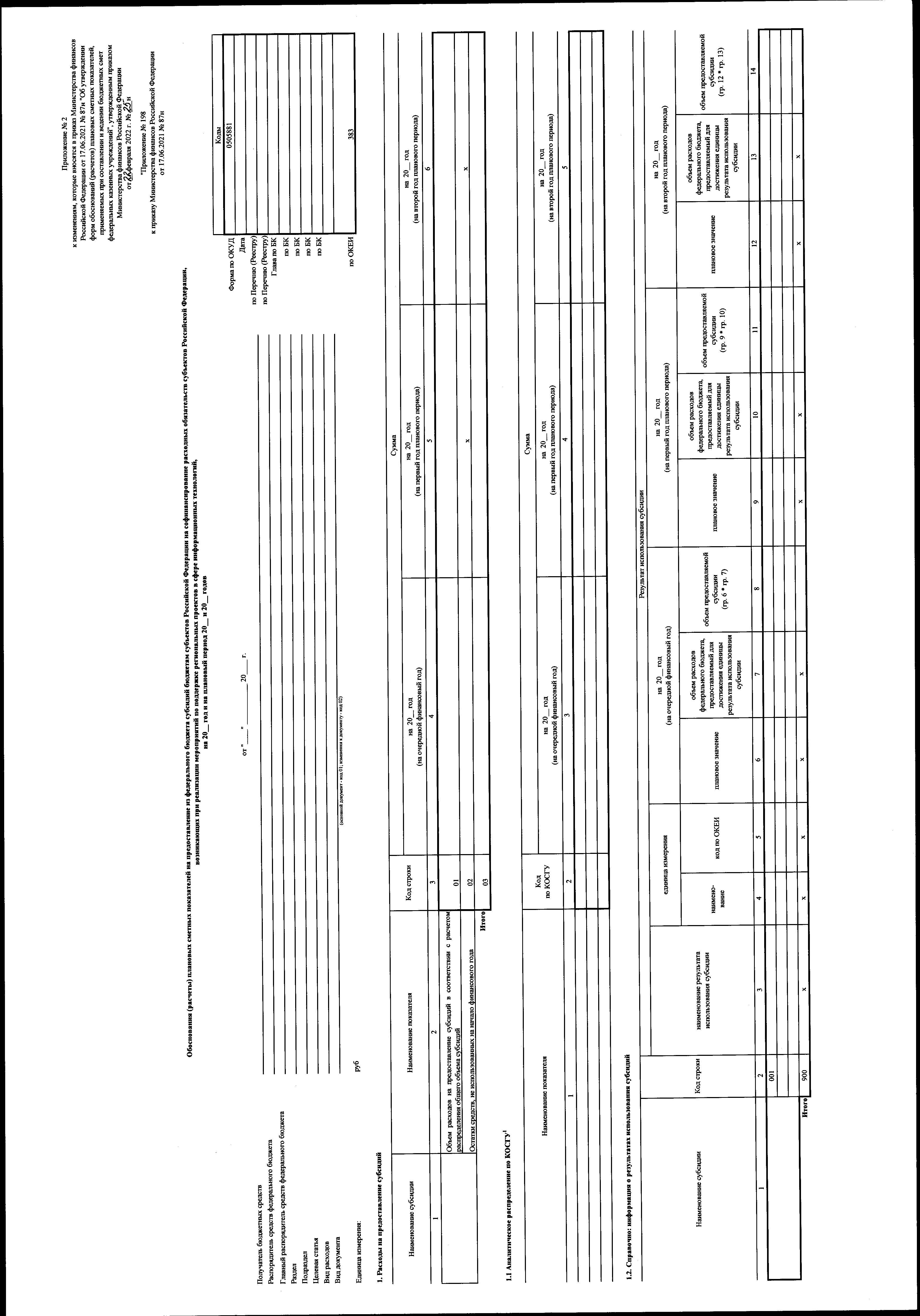 "О внесении изменений в приказ Министерства финансов Российской Федерации от 17 июня 2021 г. № 87н "Об утверждении форм обоснований (расчетов) плановых сметных показателей, применяемых при составлении и ведении бюджетных смет федеральных казенных учреждений"