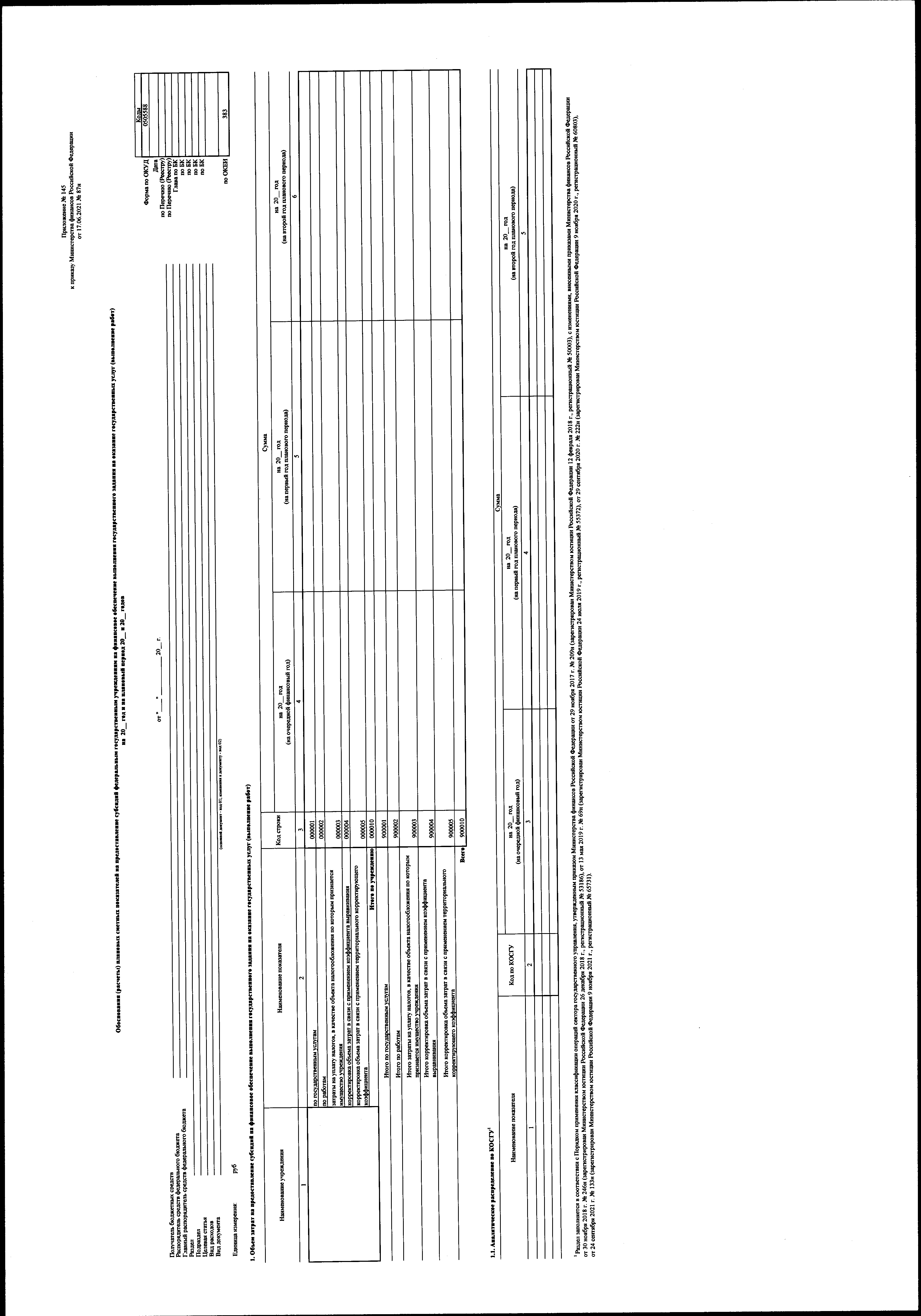 "О внесении изменений в приказ Министерства финансов Российской Федерации от 17 июня 2021 г. № 87н "Об утверждении форм обоснований (расчетов) плановых сметных показателей, применяемых при составлении и ведении бюджетных смет федеральных казенных учреждений"