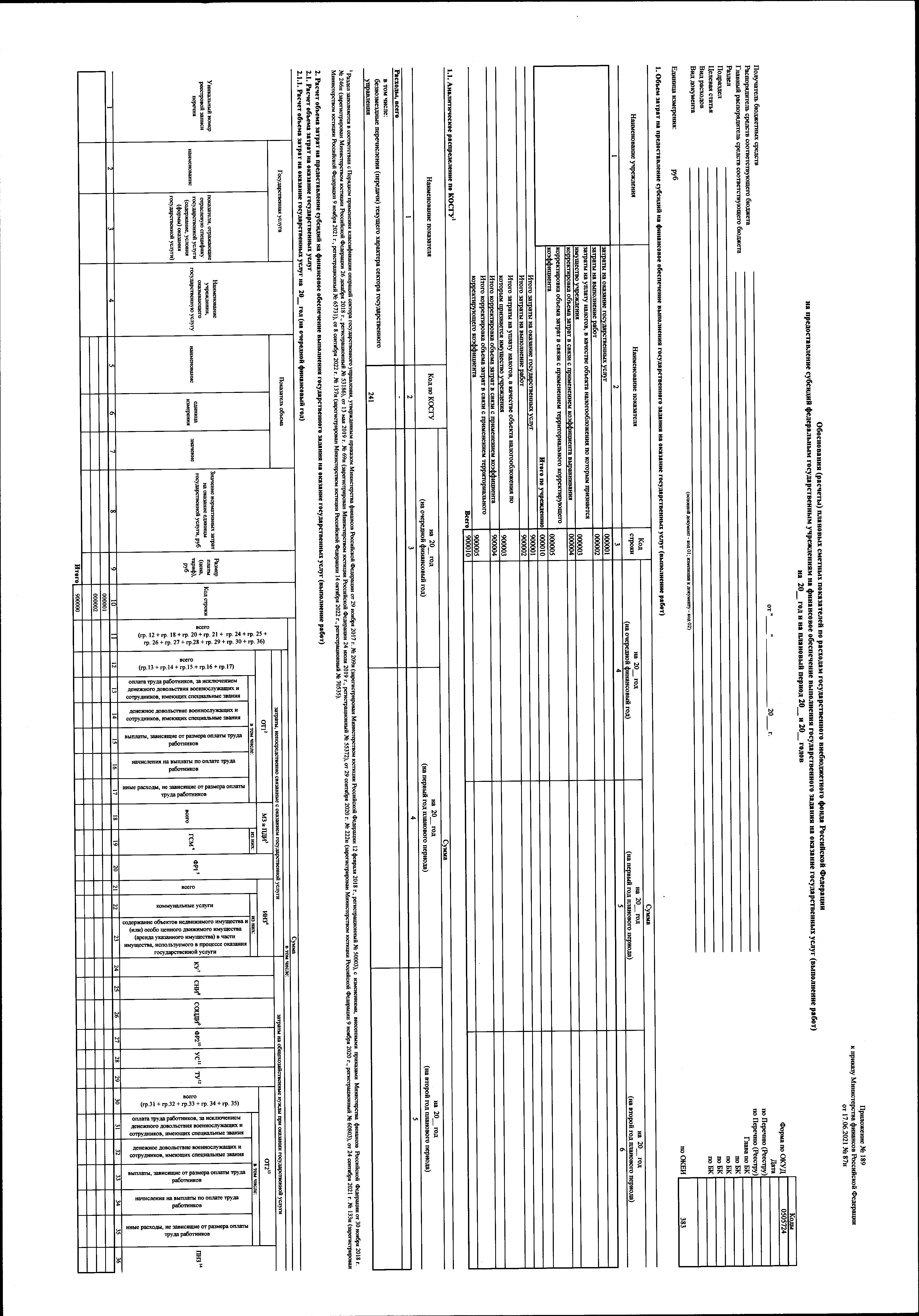 "О внесении изменений в приказ Министерства финансов Российской Федерации от 17 июня 2021 г. № 87н "Об утверждении форм обоснований (расчетов) плановых сметных показателей, применяемых при составлении и ведении бюджетных смет федеральных казенных учреждений"