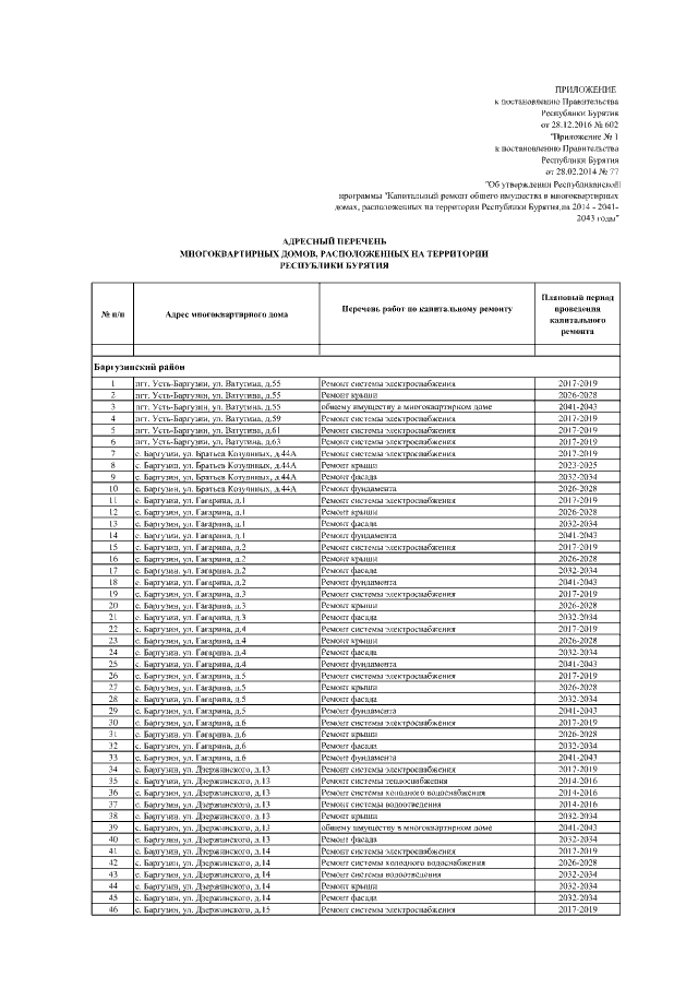 "О внесении изменений в постановление Правительства Республики Бурятия от 28.02.2014 № 77 "Об утверждении Республиканской программы "Капитальный ремонт общего имущества в многоквартирных домах, расположенных на территории Республики Бурятия, на 2014 - 2043 годы"