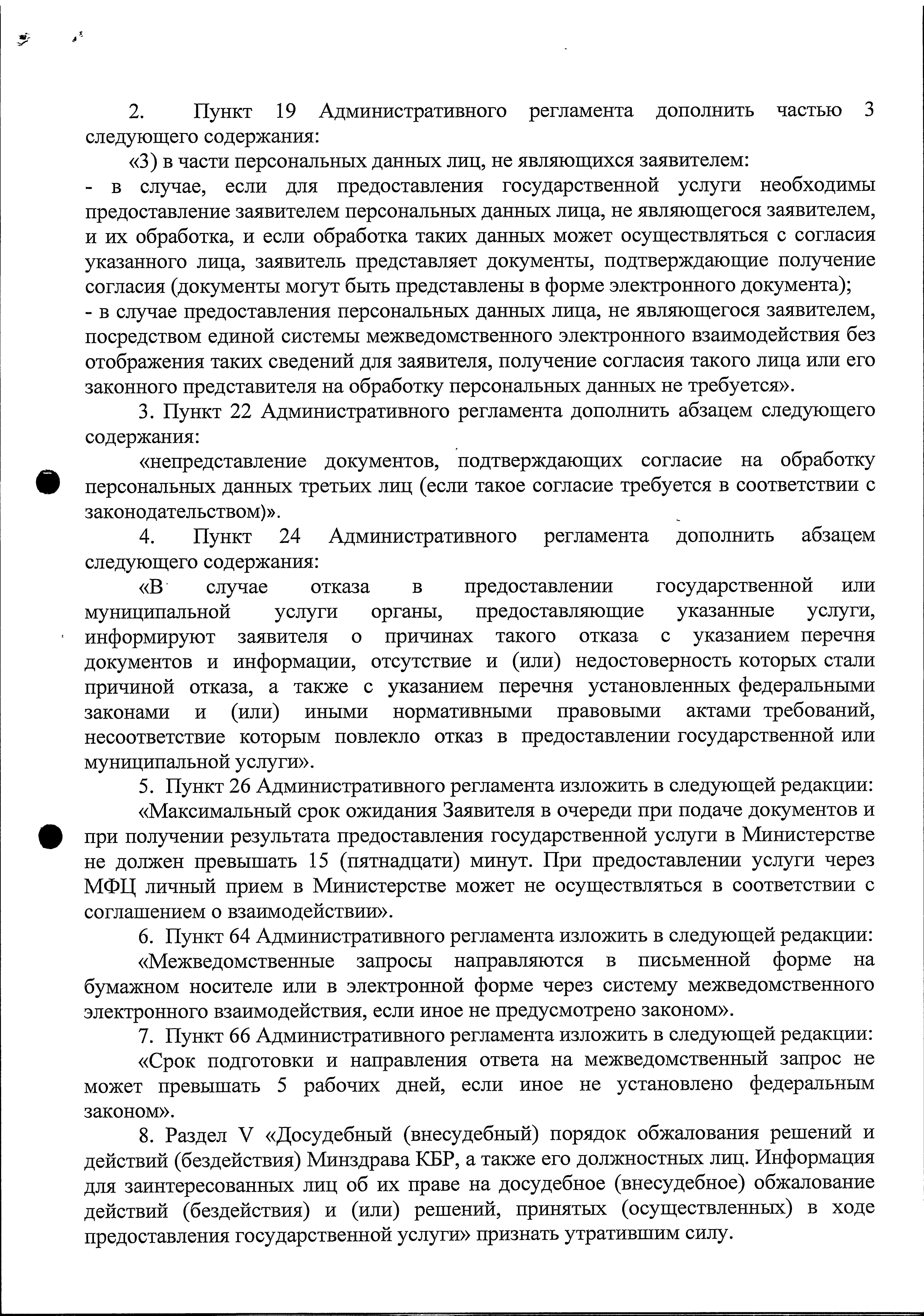 "О внесении изменений в Административный регламент Министерства здравоохранения Кабардино-Балкарской Республики "Направление граждан на лечение в медицинские организации Российской Федерации для получения высокотехнологичных видов медицинской помощи, не включенных в базовую программу обязательного медицинского страхования"