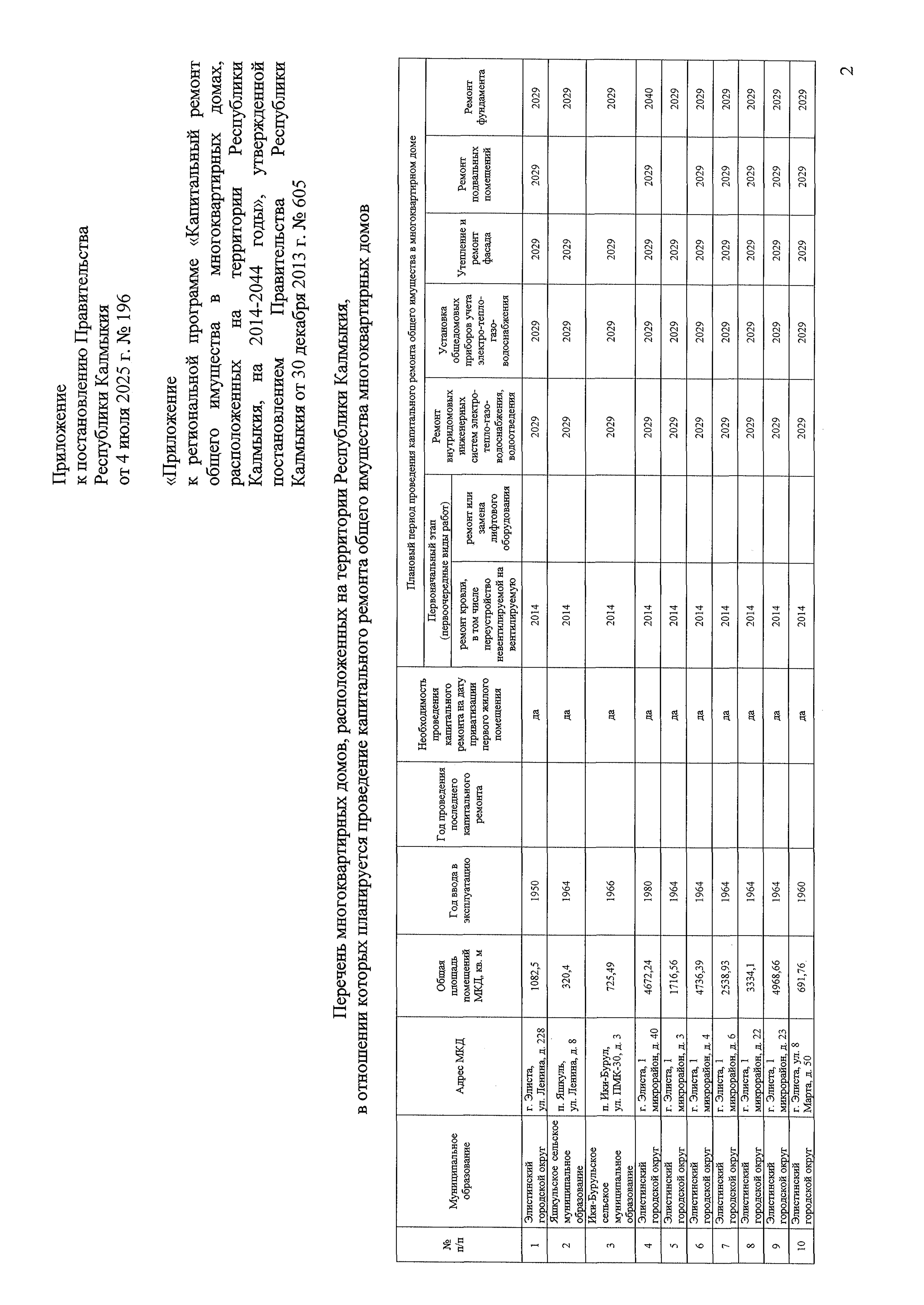 "О внесении изменений в региональную программу "Капитальный ремонт общего имущества в многоквартирных домах, расположенных на территории Республики Калмыкия, на 2014 - 2044 годы", утвержденную постановлением Правительства Республики Калмыкия от 30 декабря 2013 г. № 605"