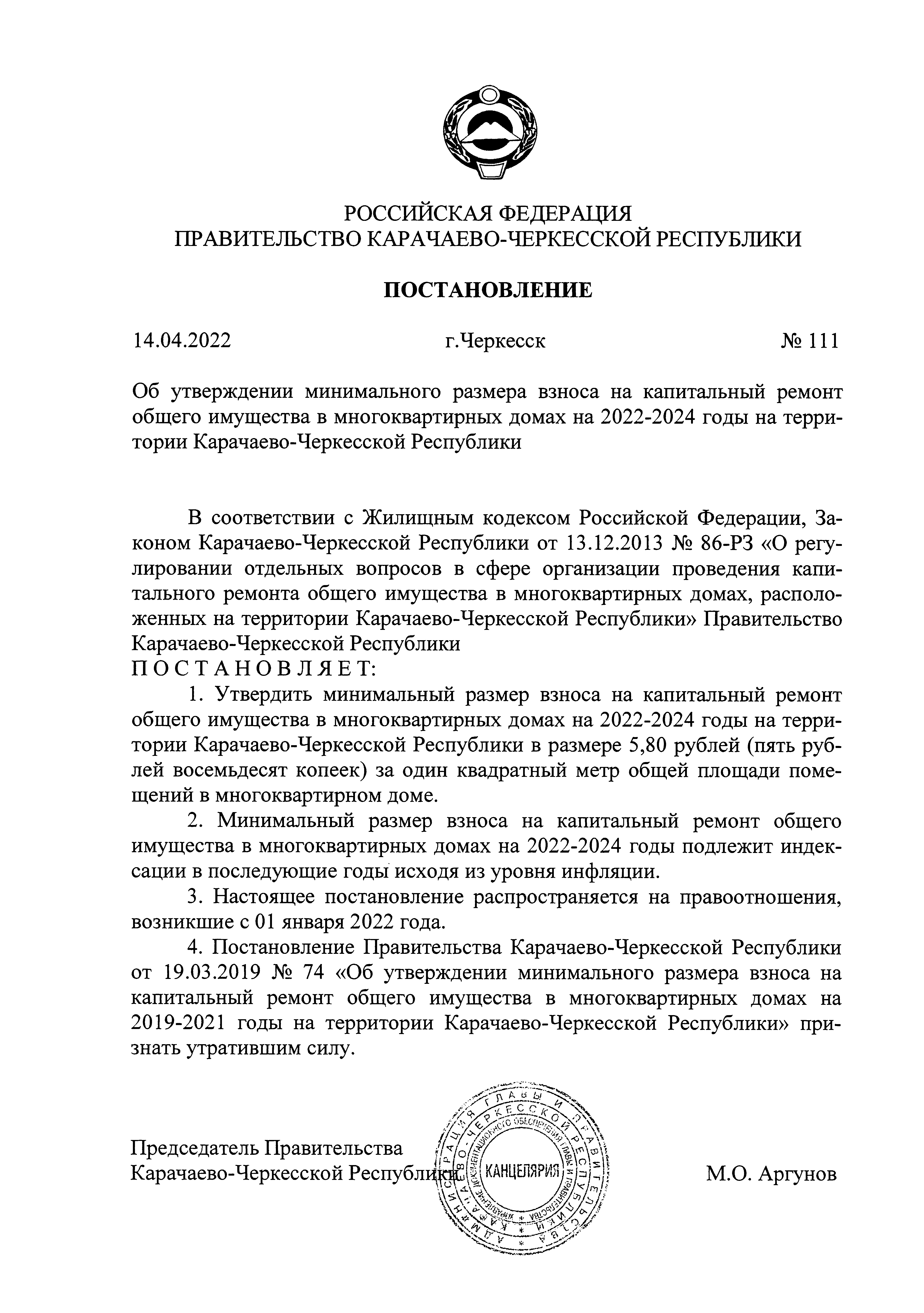 Постановление Правительства Карачаево-Черкесской Республики от 14.04.2022 № 111