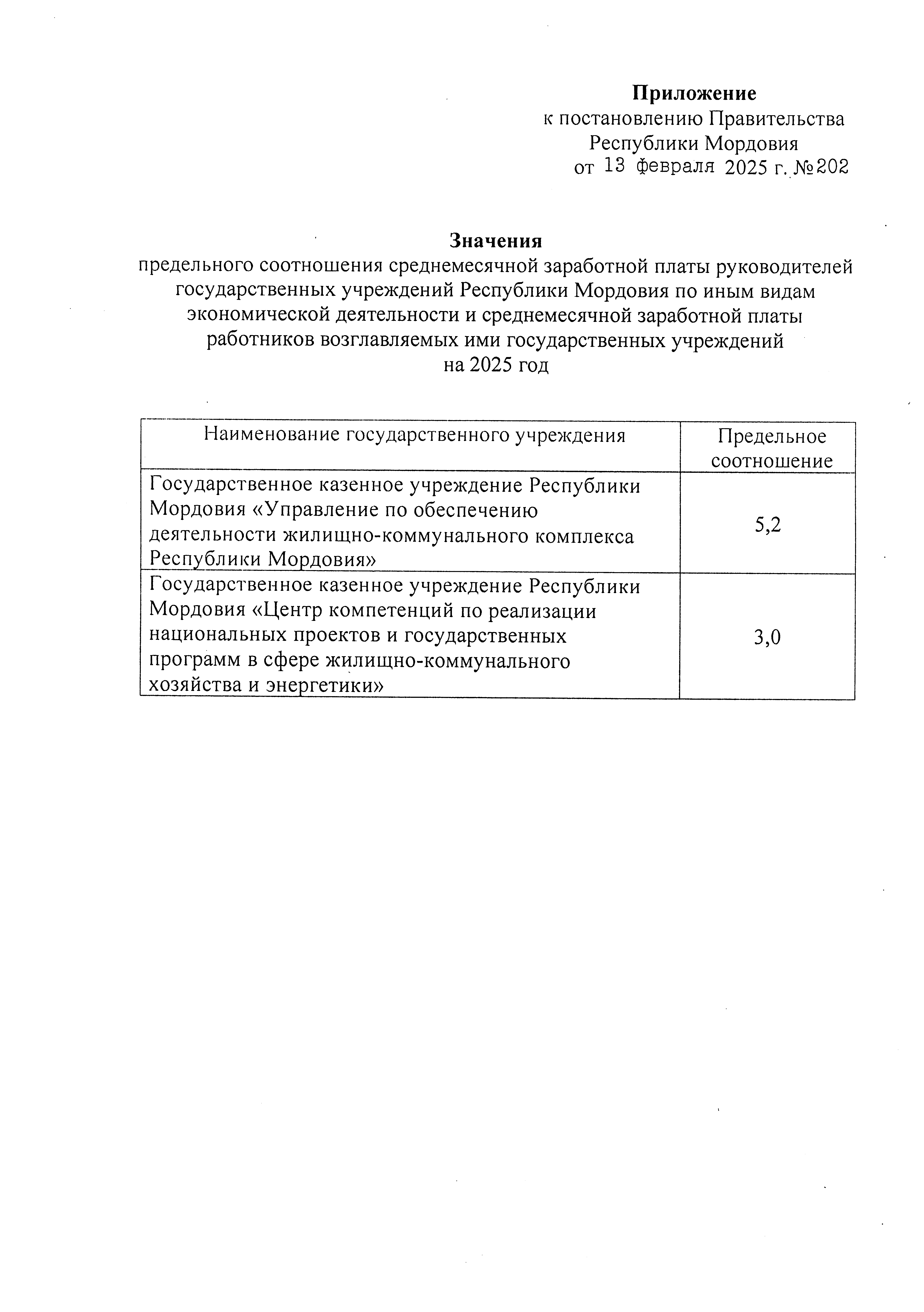 "Об установлении значений предельного соотношения среднемесячной заработной платы руководителей государственных учреждений Республики Мордовия по иным видам экономической деятельности и среднемесячной заработной платы работников возглавляемых ими государственных учреждений на 2025 год"