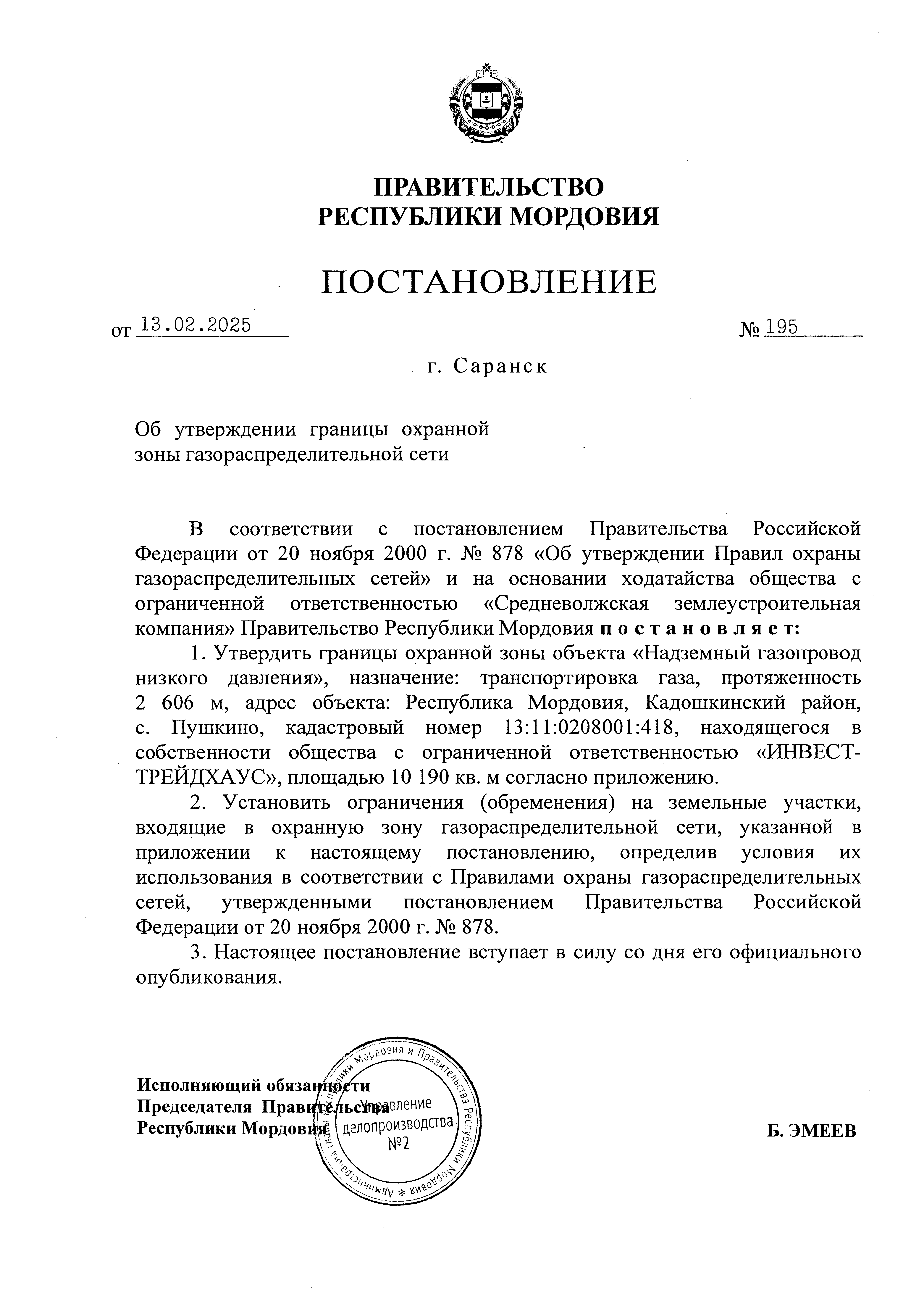 Постановление Правительства Республики Мордовия от 13.02.2025 № 195