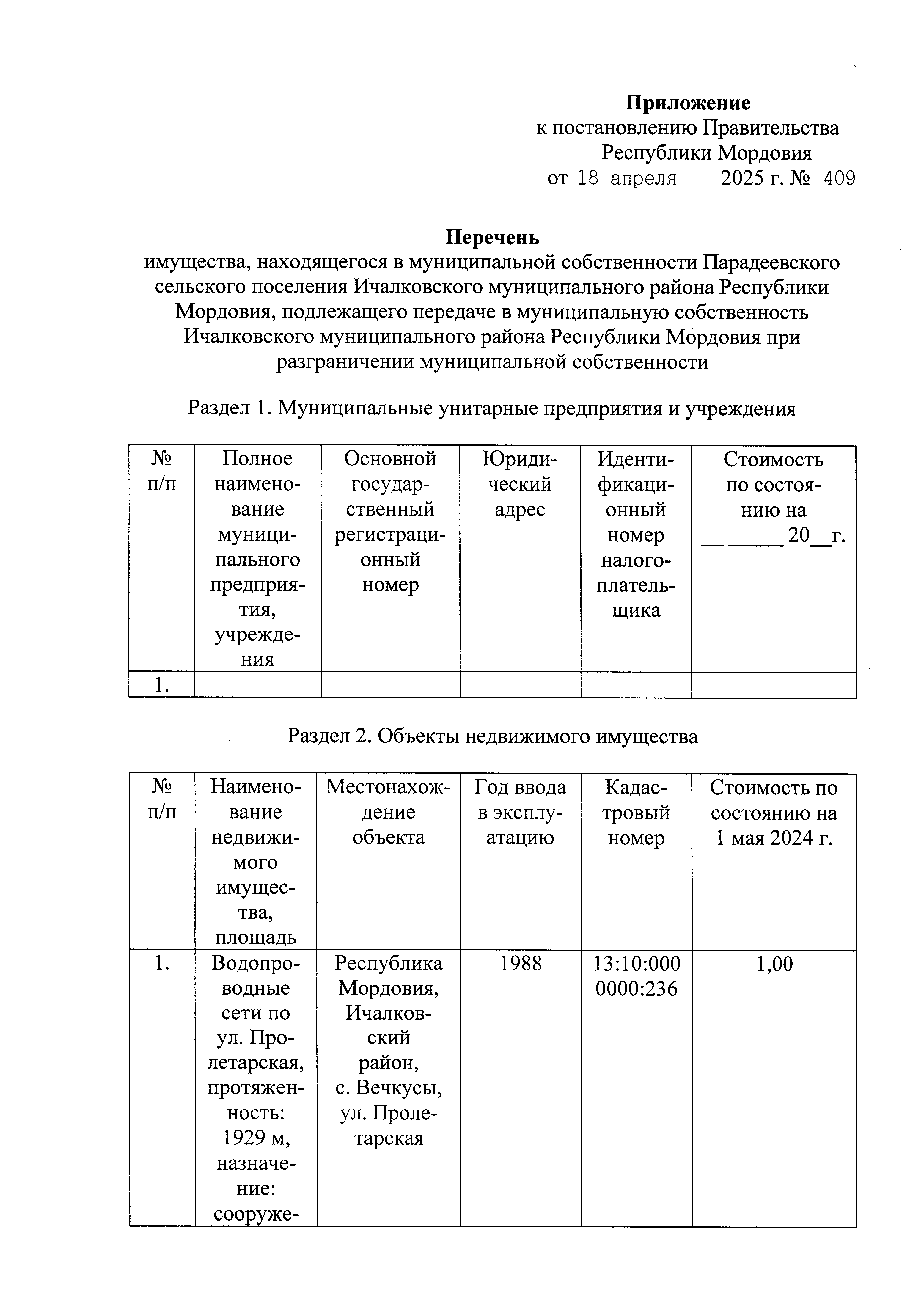 Постановление Правительства Республики Мордовия от 18.04.2025 № 409