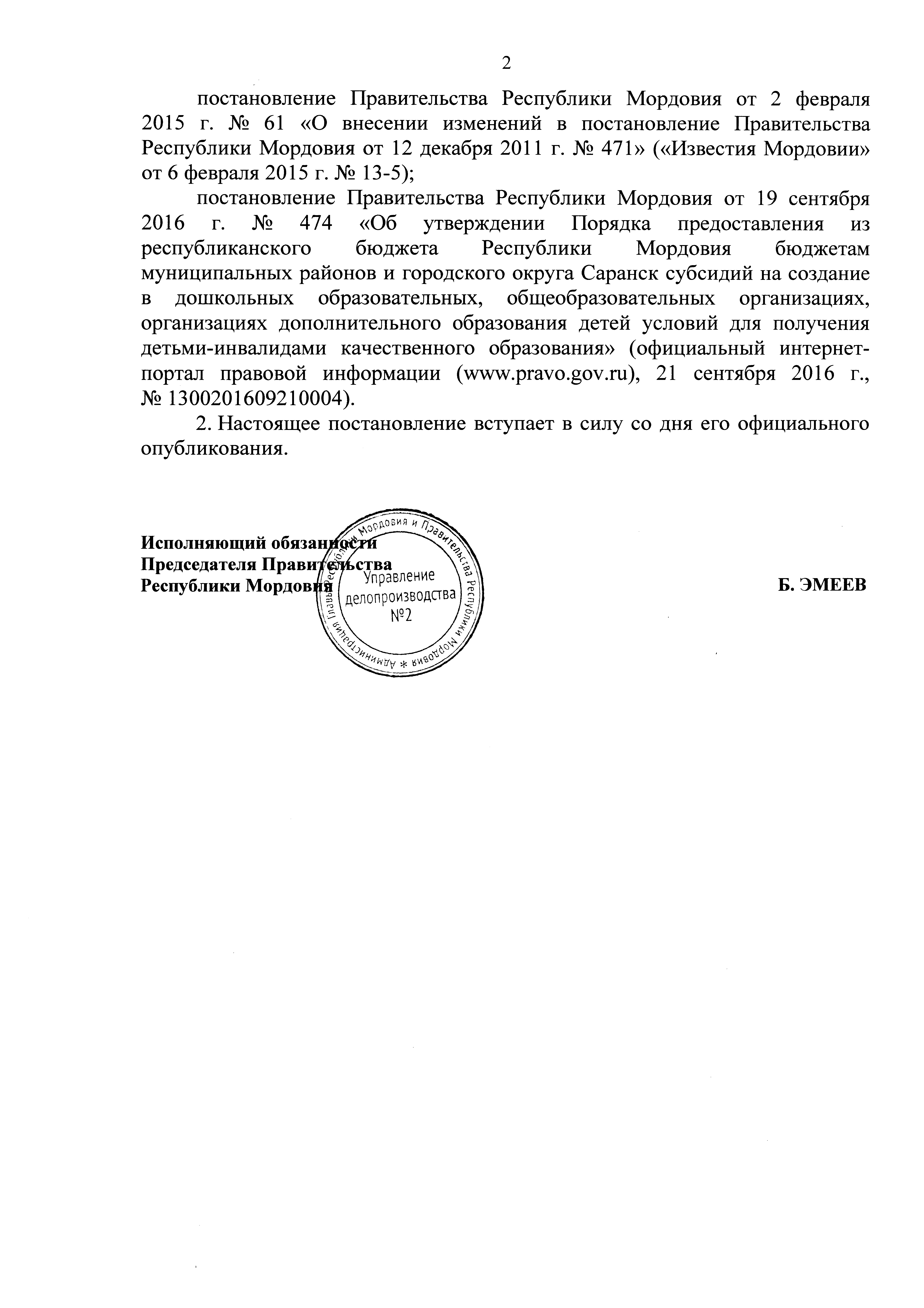 "О признании утратившими силу отдельных постановлений Правительства Республики Мордовия"