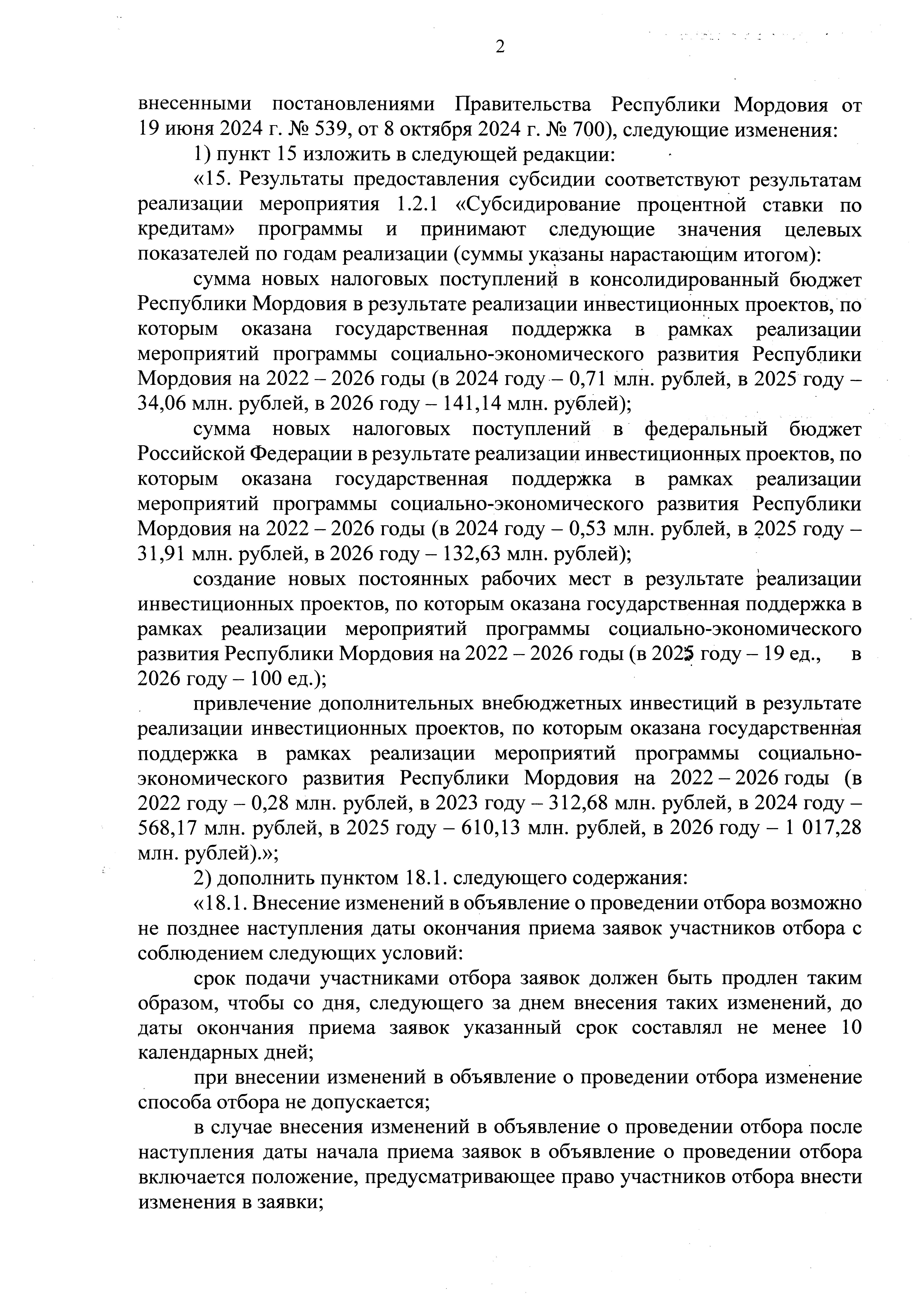 "О внесении изменений в Порядок предоставления из республиканского бюджета Республики Мордовия субсидий юридическим лицам (кроме некоммерческих организаций), индивидуальным предпринимателям на реализацию мероприятий "Программы социально-экономического развития Республики Мордовия на 2022 – 2026 годы" (субсидирование процентной ставки по кредитам)"