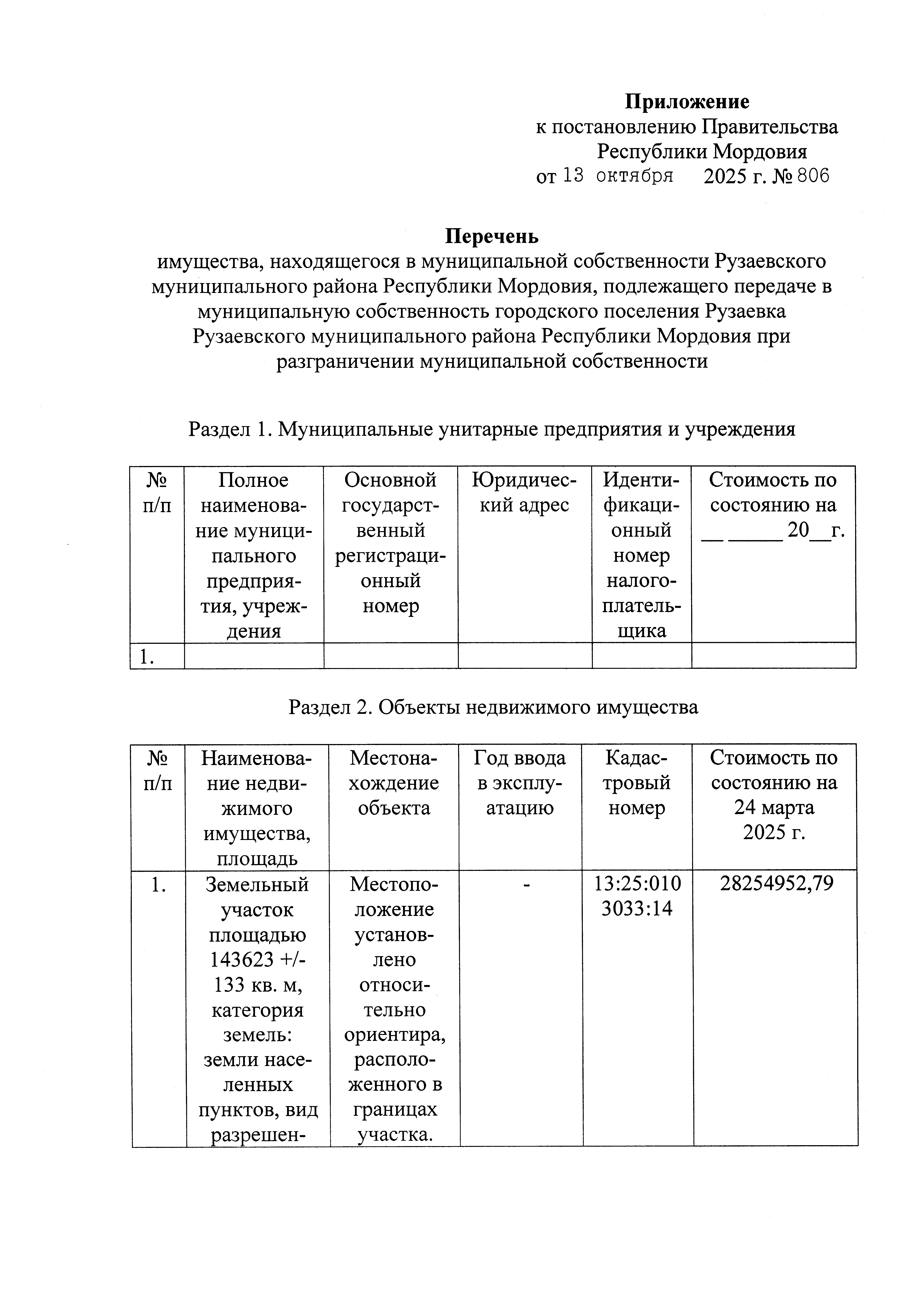 Постановление Правительства Республики Мордовия от 13.10.2025 № 806