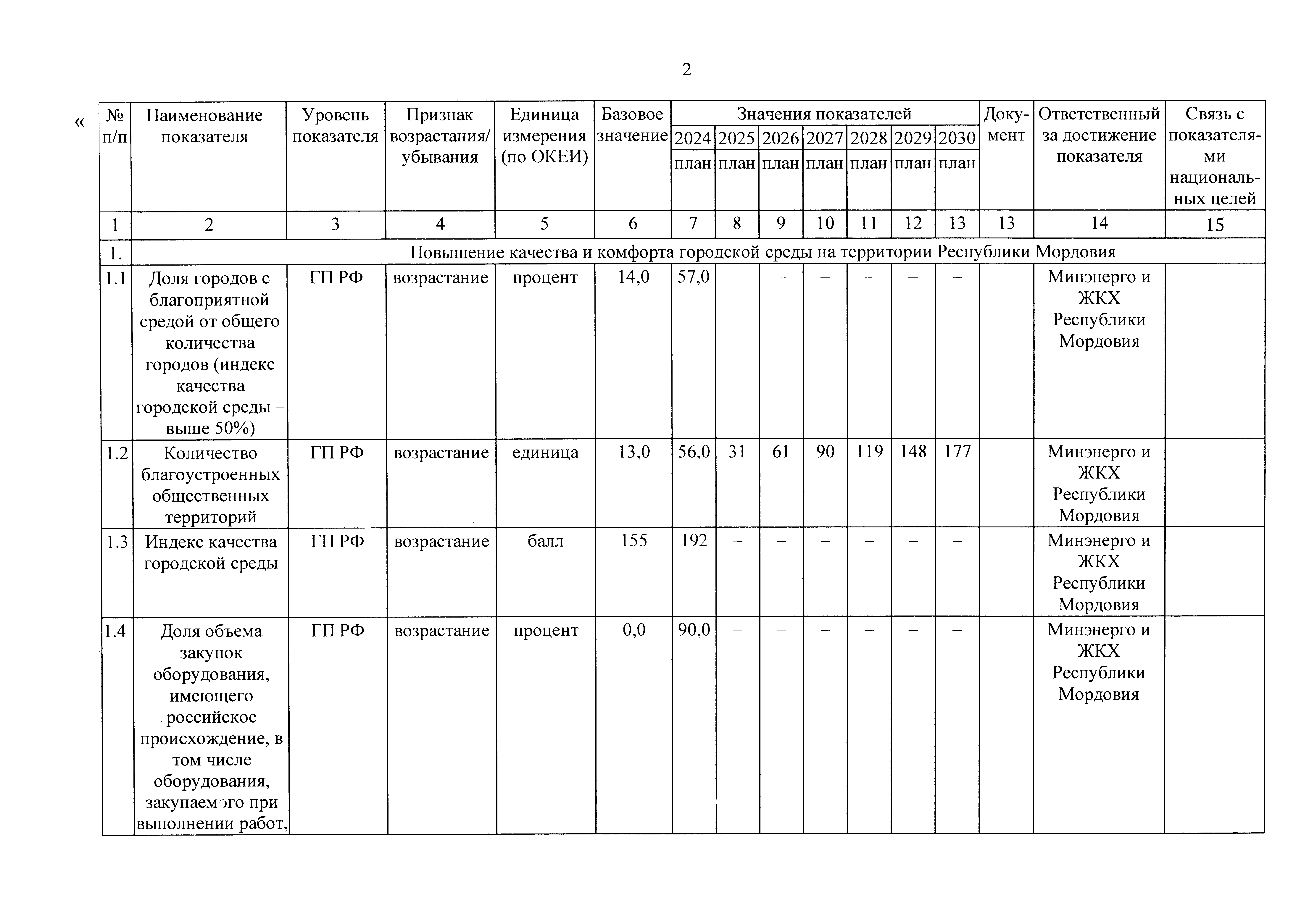 "О внесении изменений в приложение 1 к Государственной программе Республики Мордовия "Формирование современной городской среды на территории Республики Мордовия"