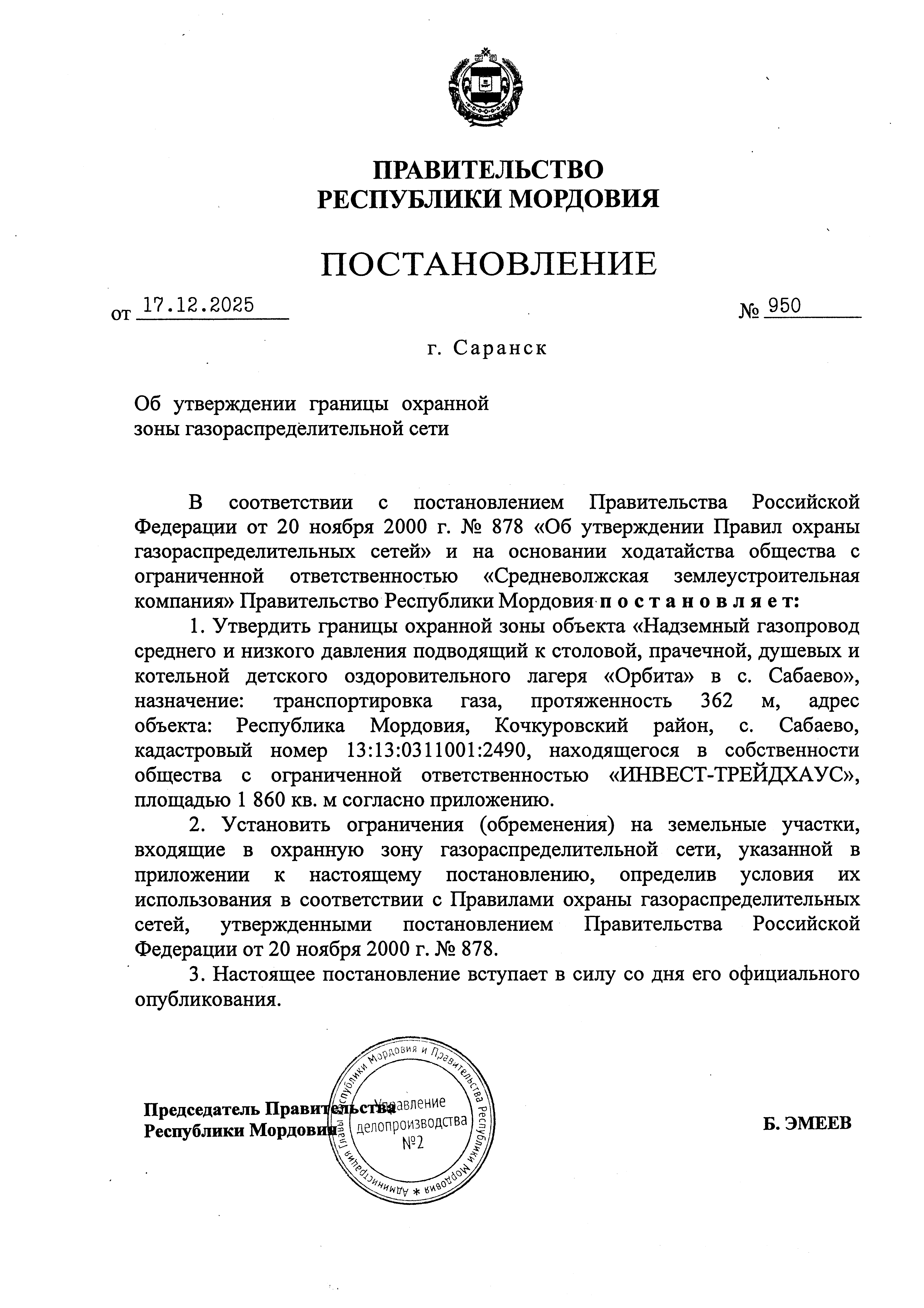 Постановление Правительства Республики Мордовия от 17.12.2025 № 950