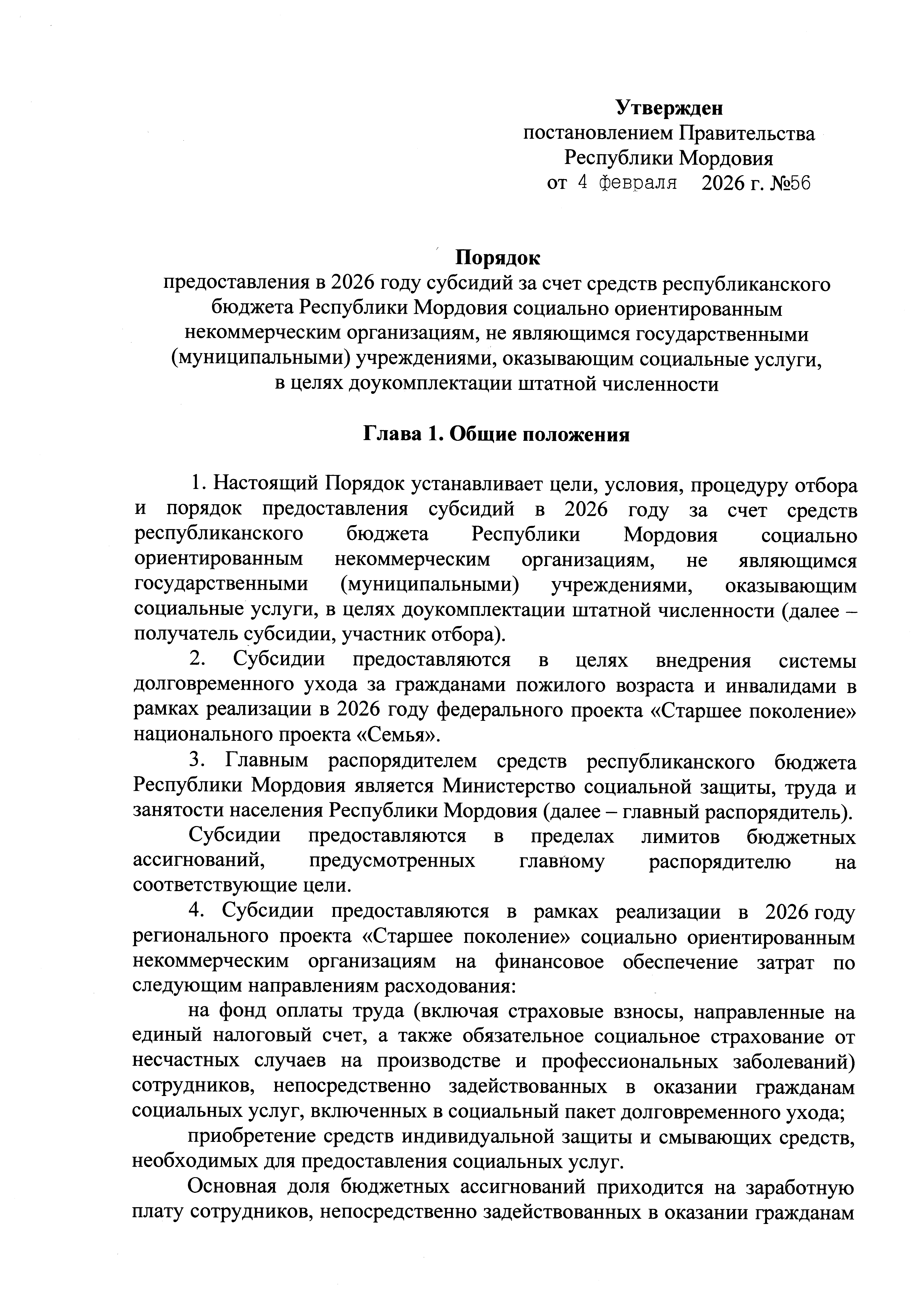 Постановление Правительства Республики Мордовия от 04.02.2026 № 56