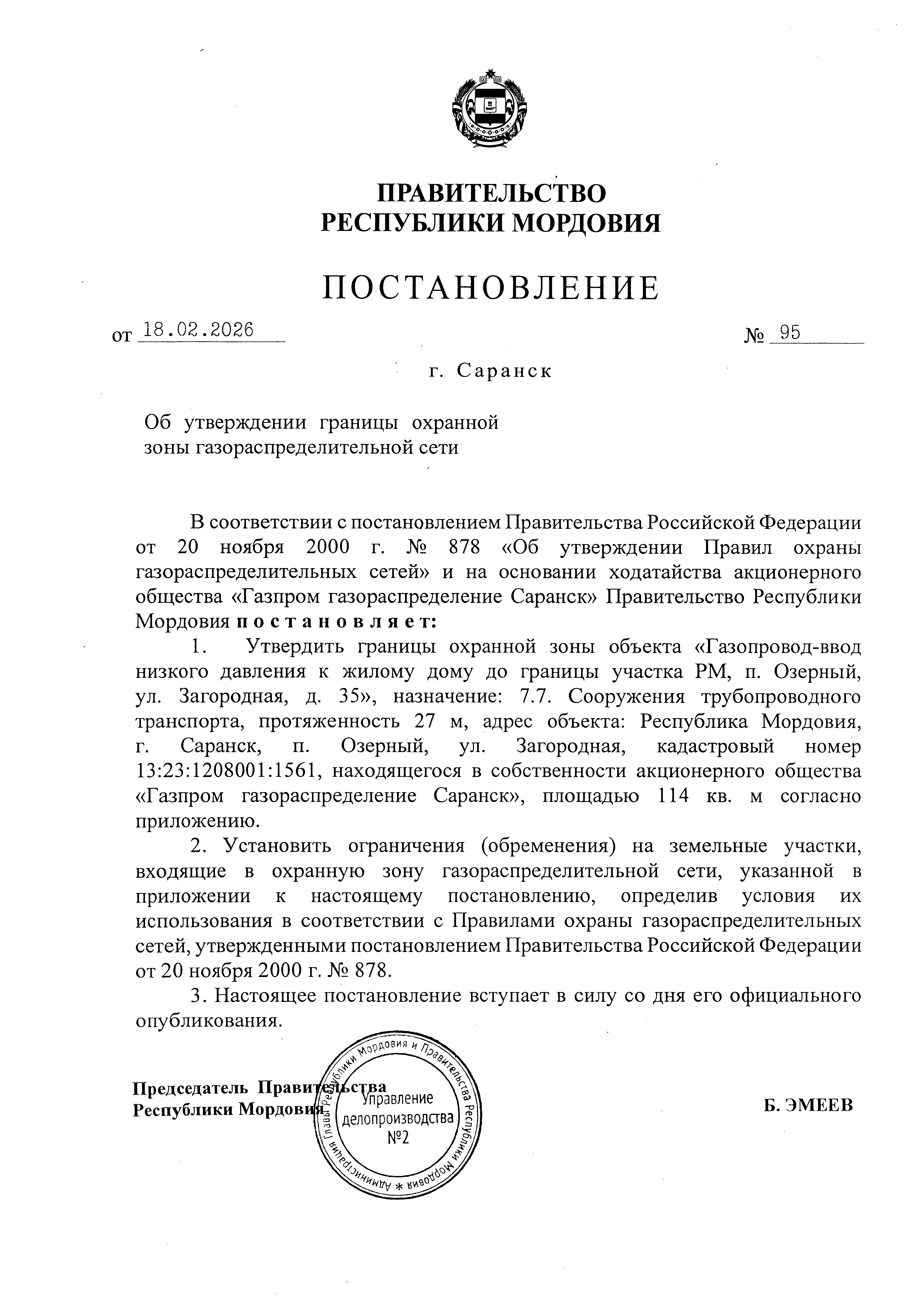 Постановление Правительства Республики Мордовия от 18.02.2026 № 95
