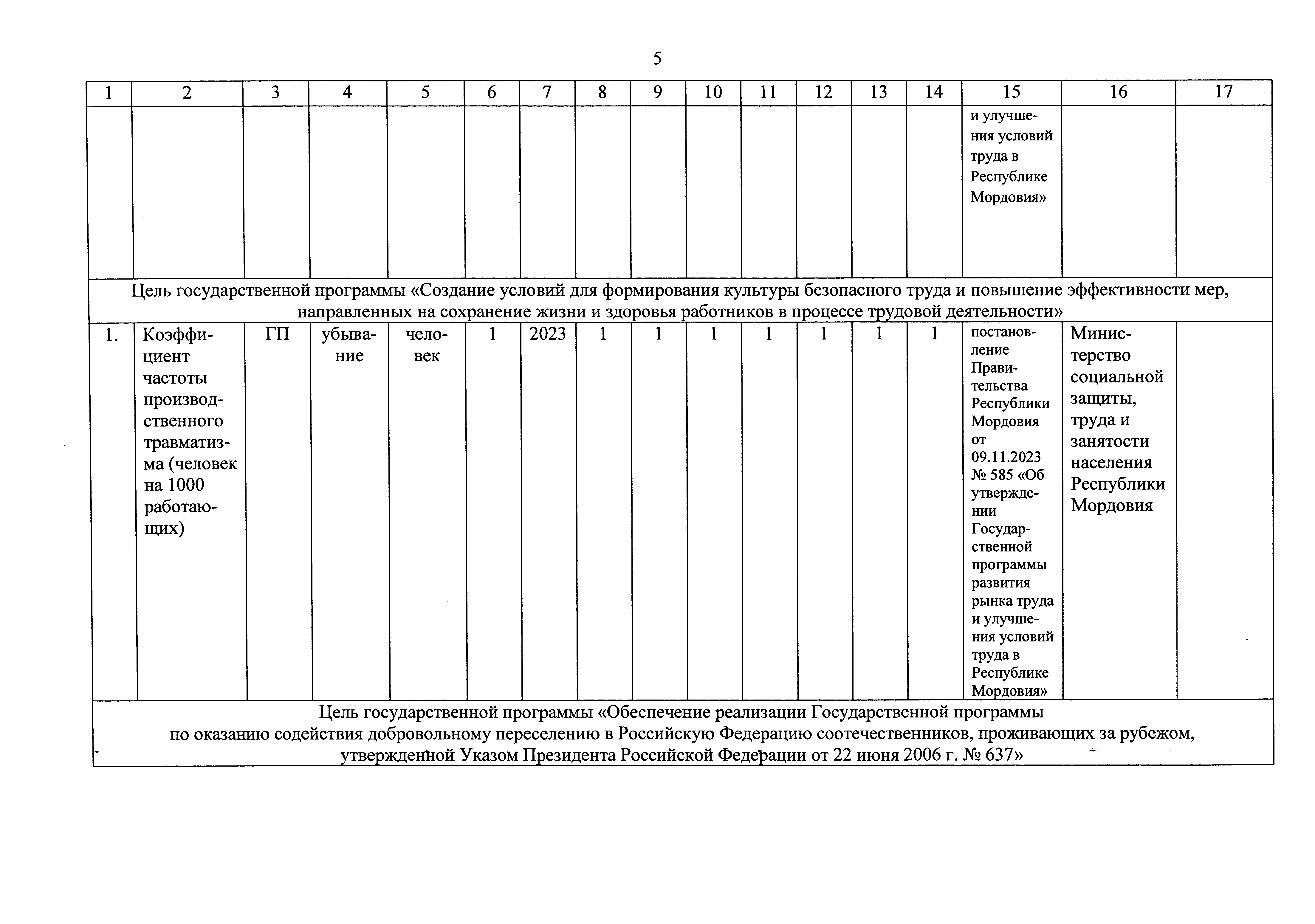 "О внесении изменения в приложение 1 к Государственной программе развития рынка труда и улучшения условий труда в Республике Мордовия"
