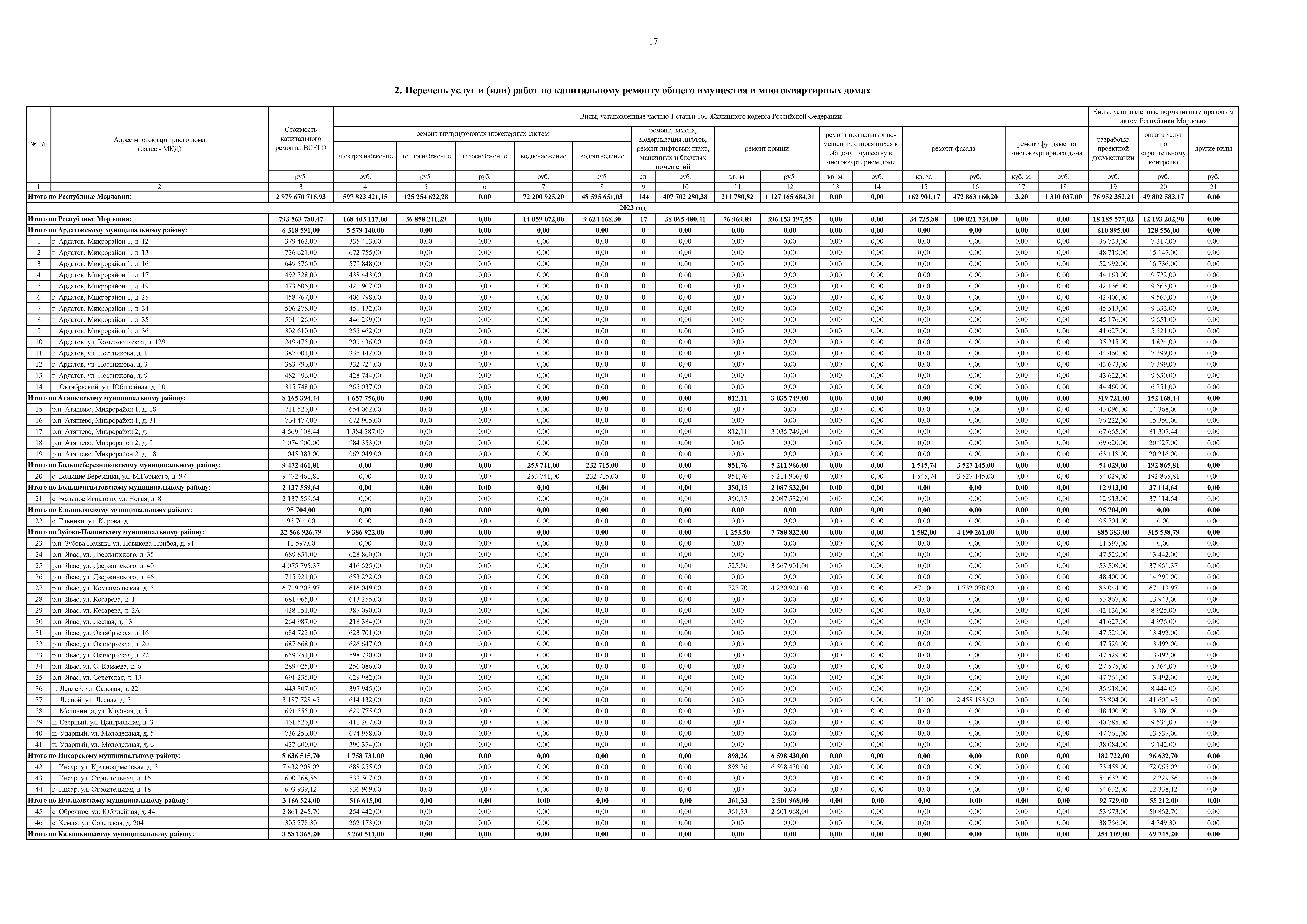 "О внесении изменения в краткосрочный план реализации на 2023 – 2025 годы Республиканской адресной программы "Проведение капитального ремонта общего имущества в многоквартирных домах, расположенных на территории Республики Мордовия" на 2014 – 2061 годы"
