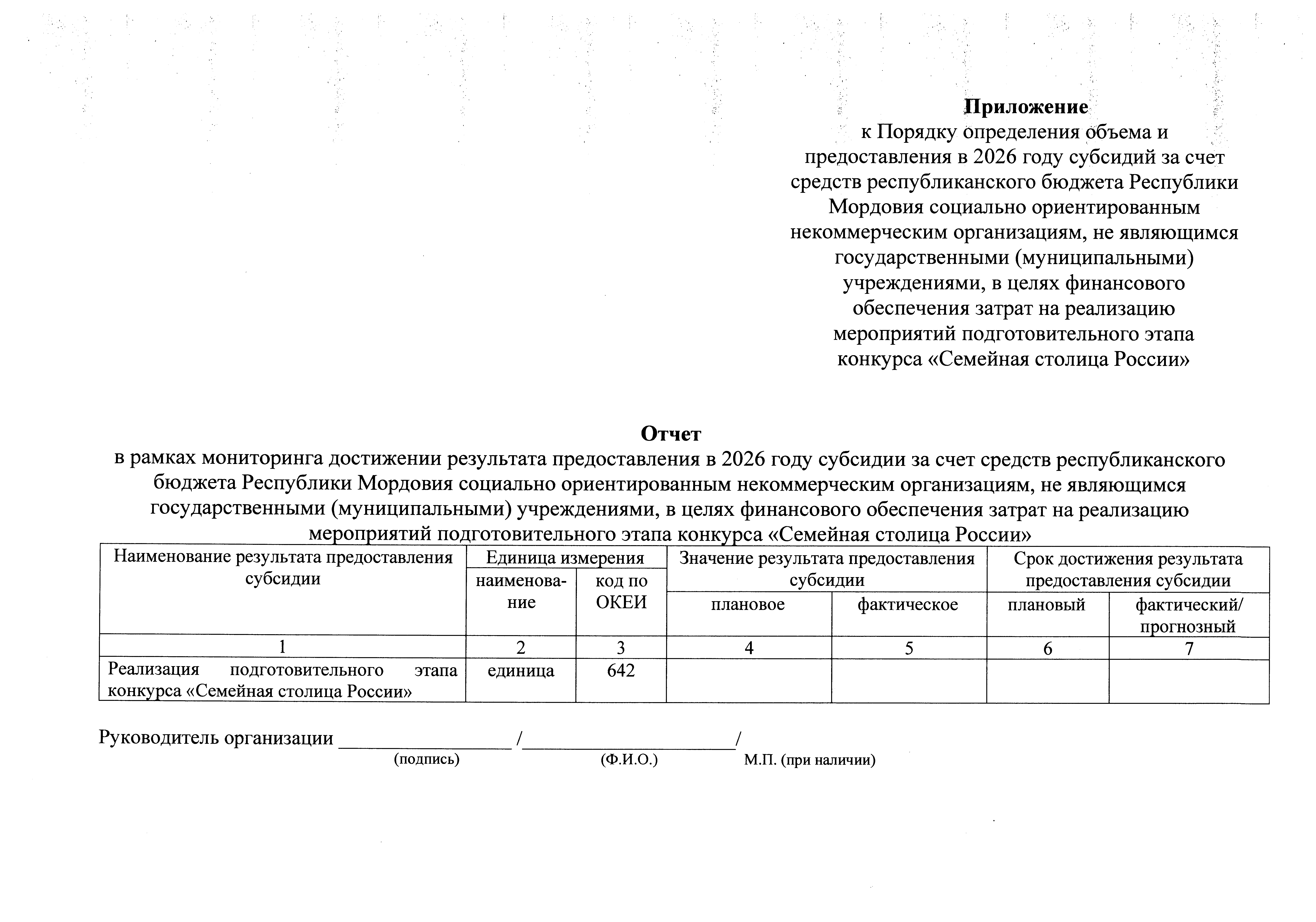 "О Порядке определения объема и предоставления в 2026 году субсидий за счет средств республиканского бюджета Республики Мордовия социально ориентированным некоммерческим организациям, не являющимся государственными (муниципальными) учреждениями, в целях финансового обеспечения затрат на реализацию мероприятий подготовительного этапа конкурса "Семейная столица России"