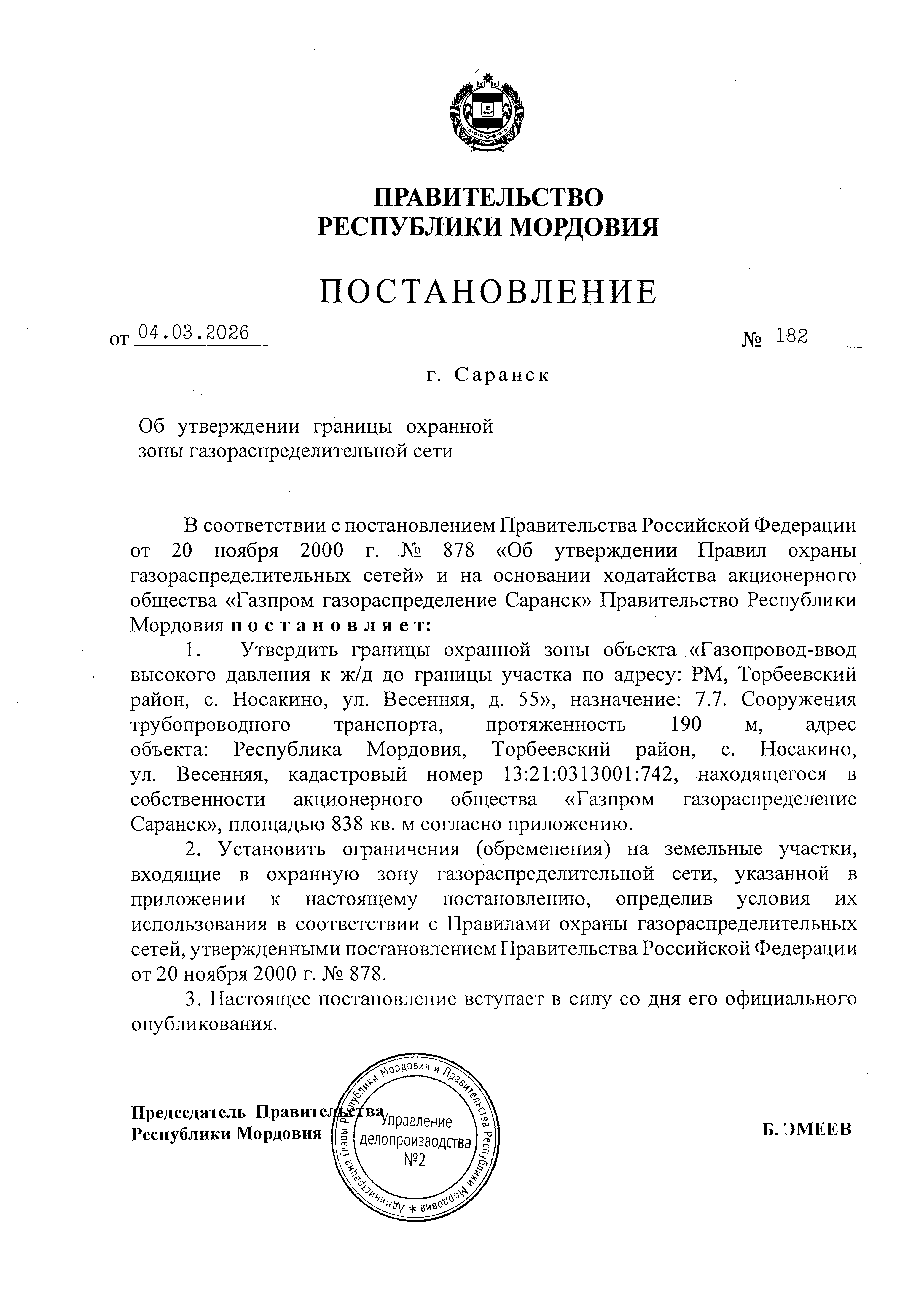 Постановление Правительства Республики Мордовия от 04.03.2026 № 182