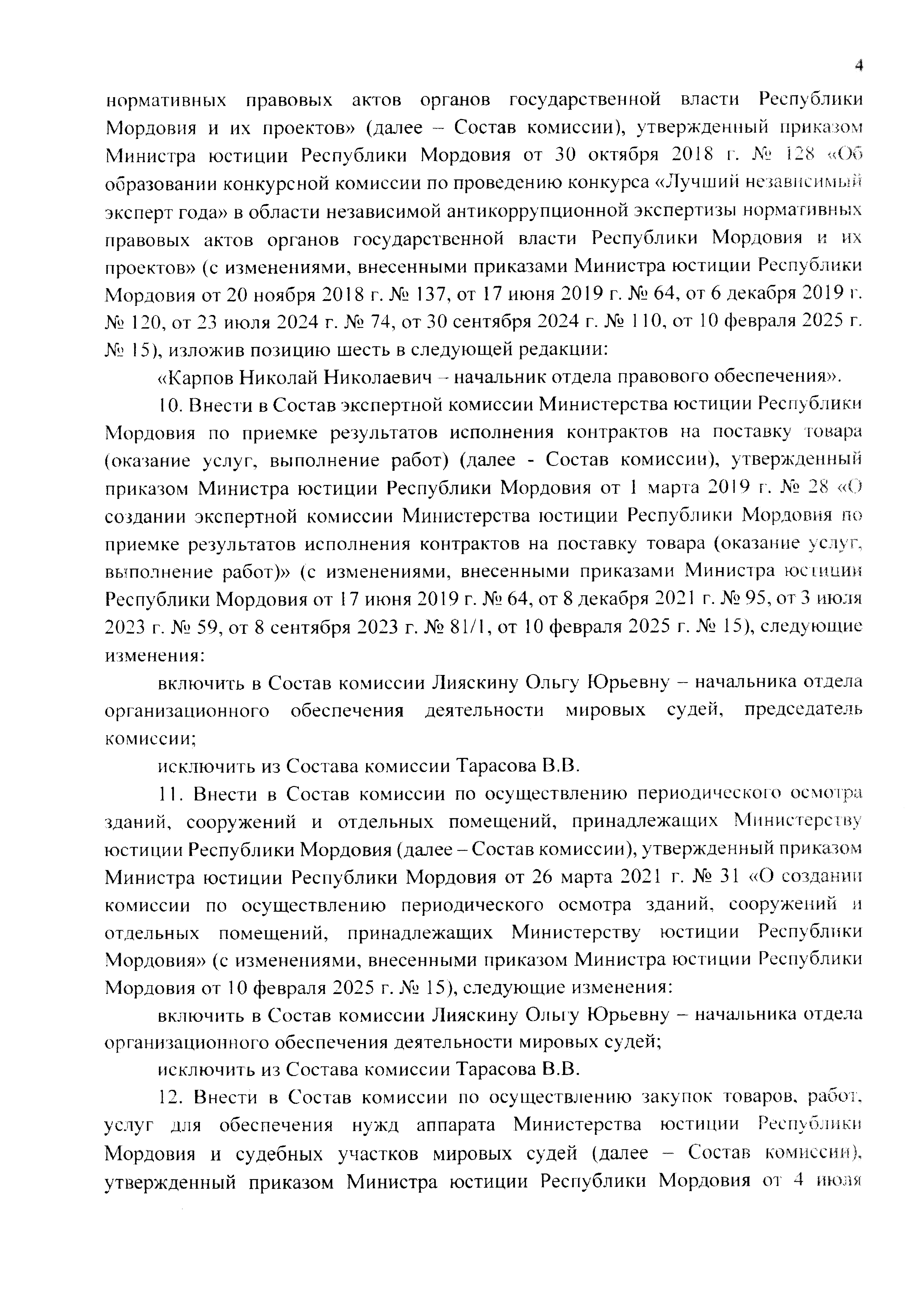 "О внесении изменений в составы некоторых комиссий Министерства юстиции Республики Мордовия"