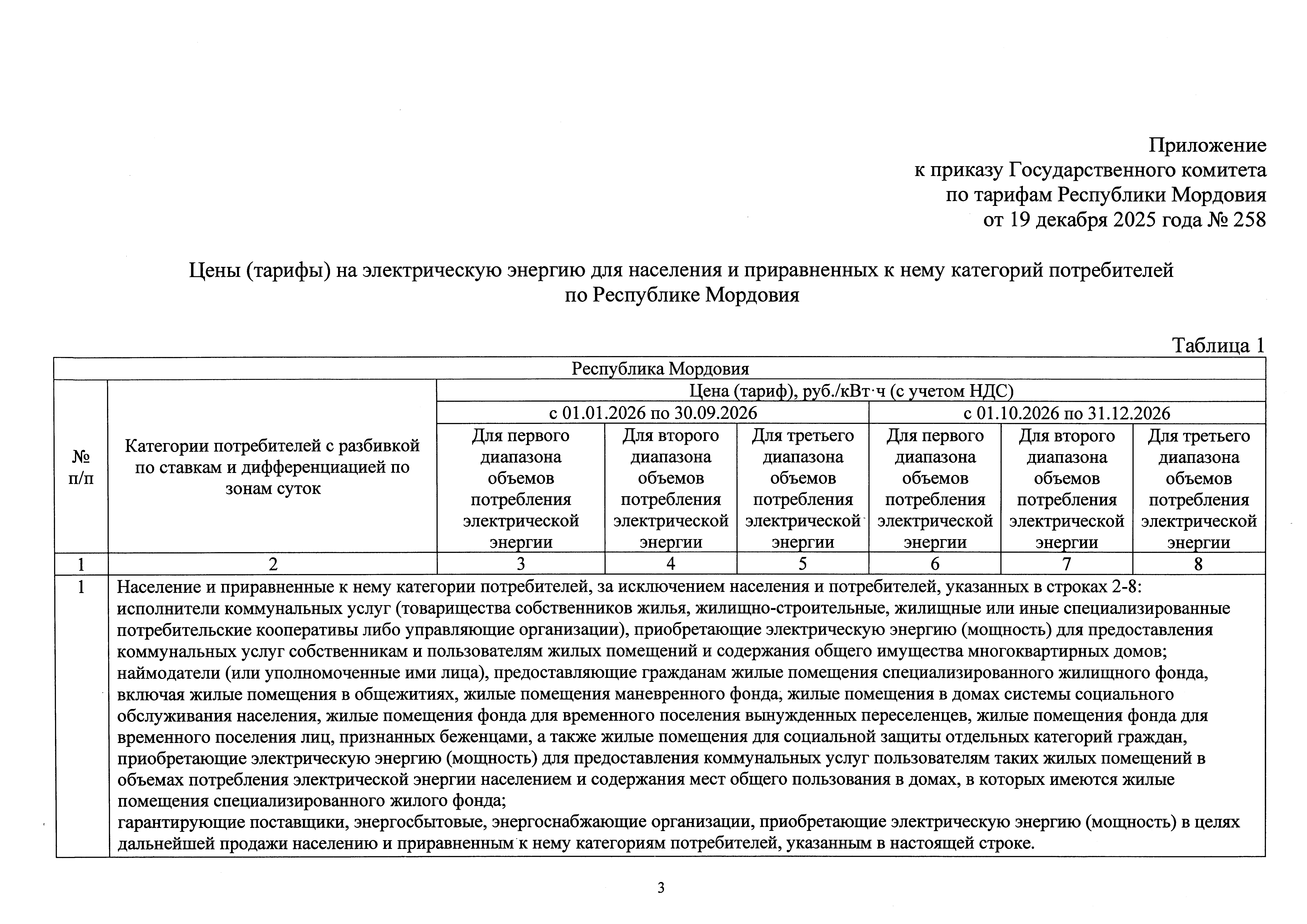 Приказ Государственного комитета по тарифам Республики Мордовия от 19.12.2025 № 258