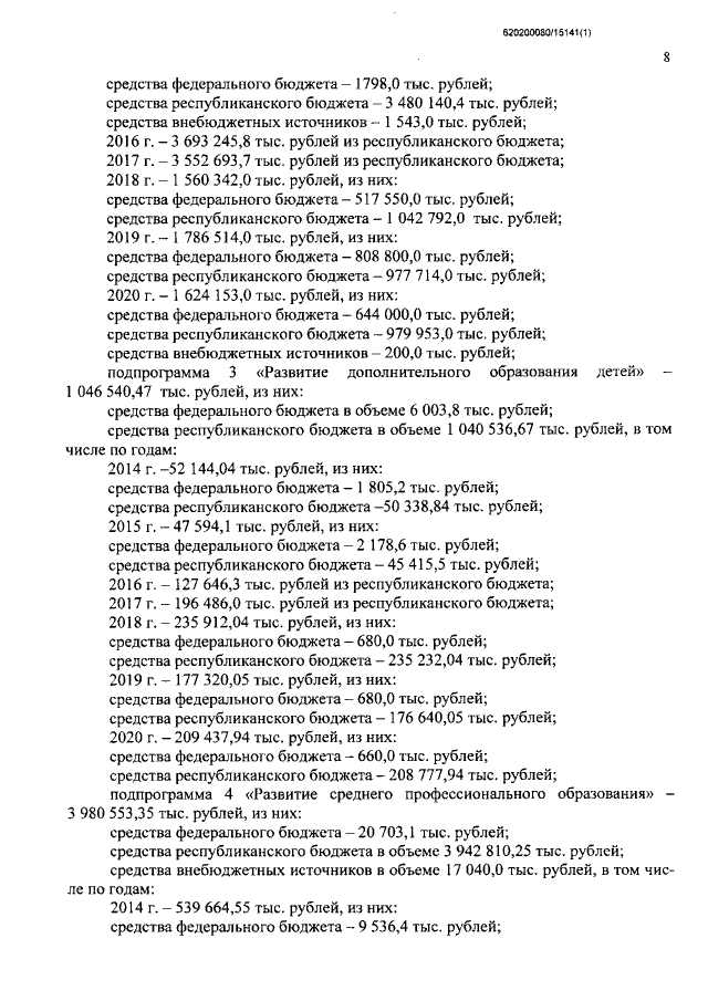 Постановление Правительства Республики Тыва от 06.11.2015 № 512 "О внесении изменений в государственную программу Республики Тыва "Развитие образования и науки на 2014-2020 годы"