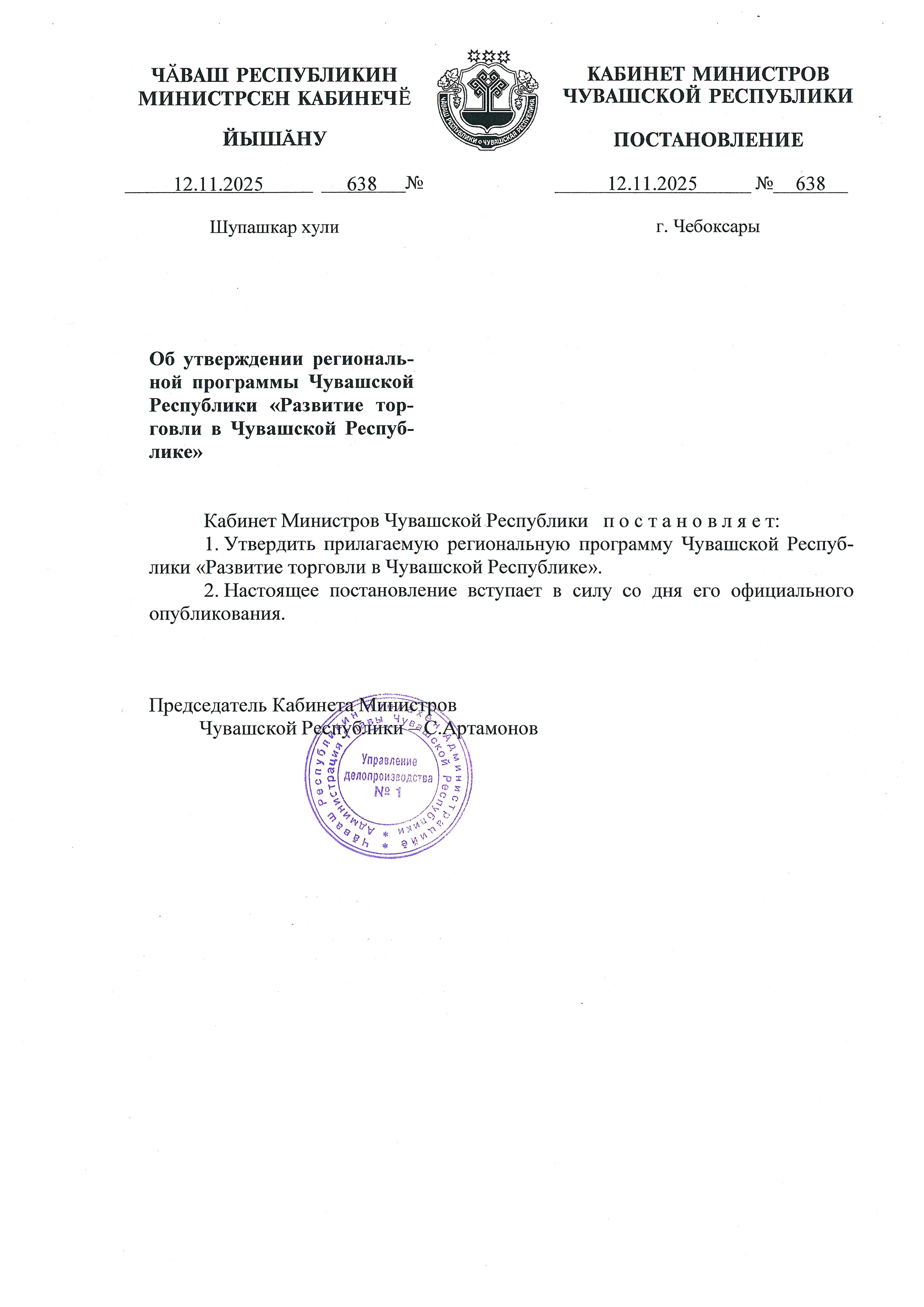 Постановление Кабинета Министров Чувашской Республики от 12.11.2025 № 638