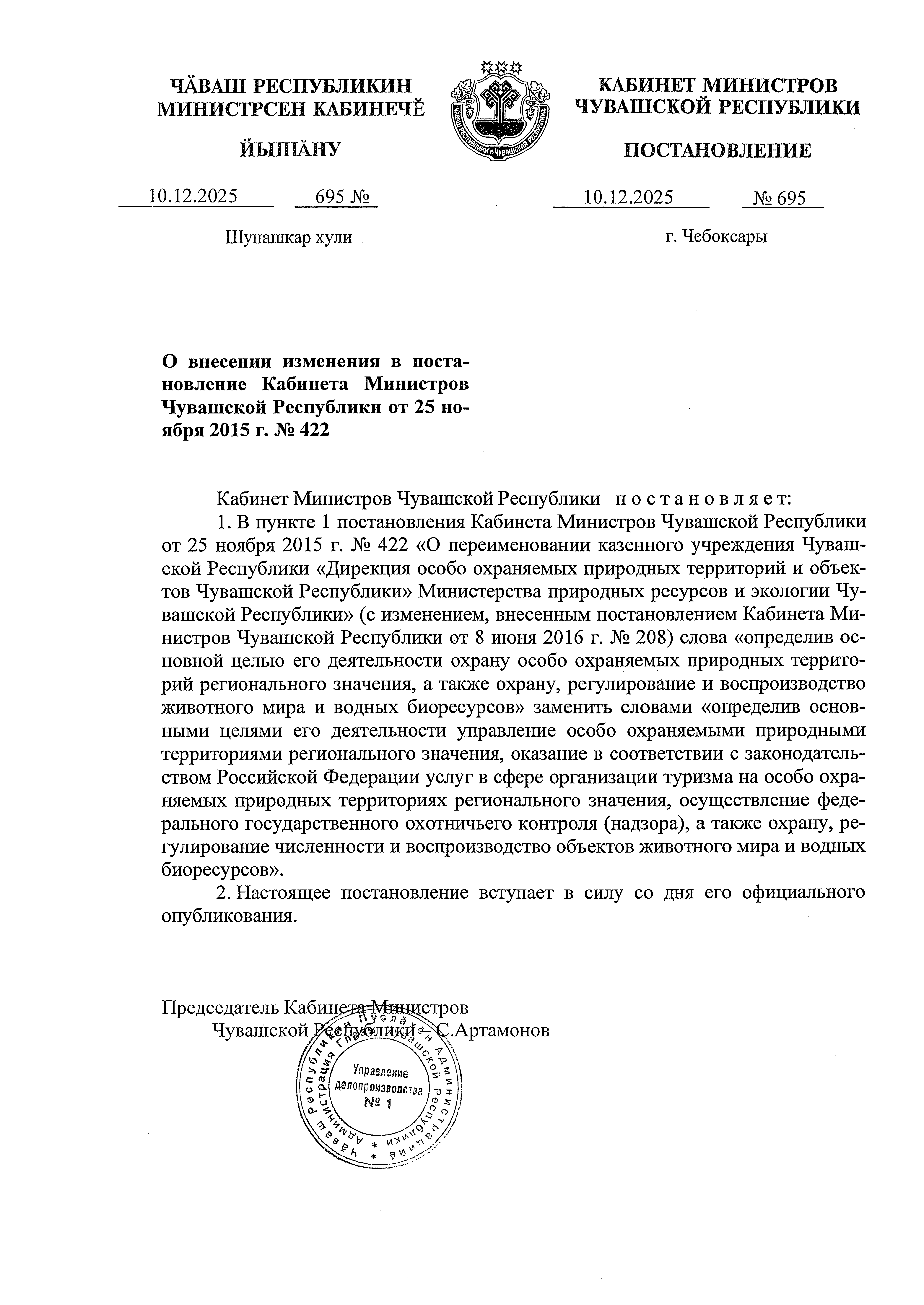 Постановление Кабинета Министров Чувашской Республики от 10.12.2025 № 695