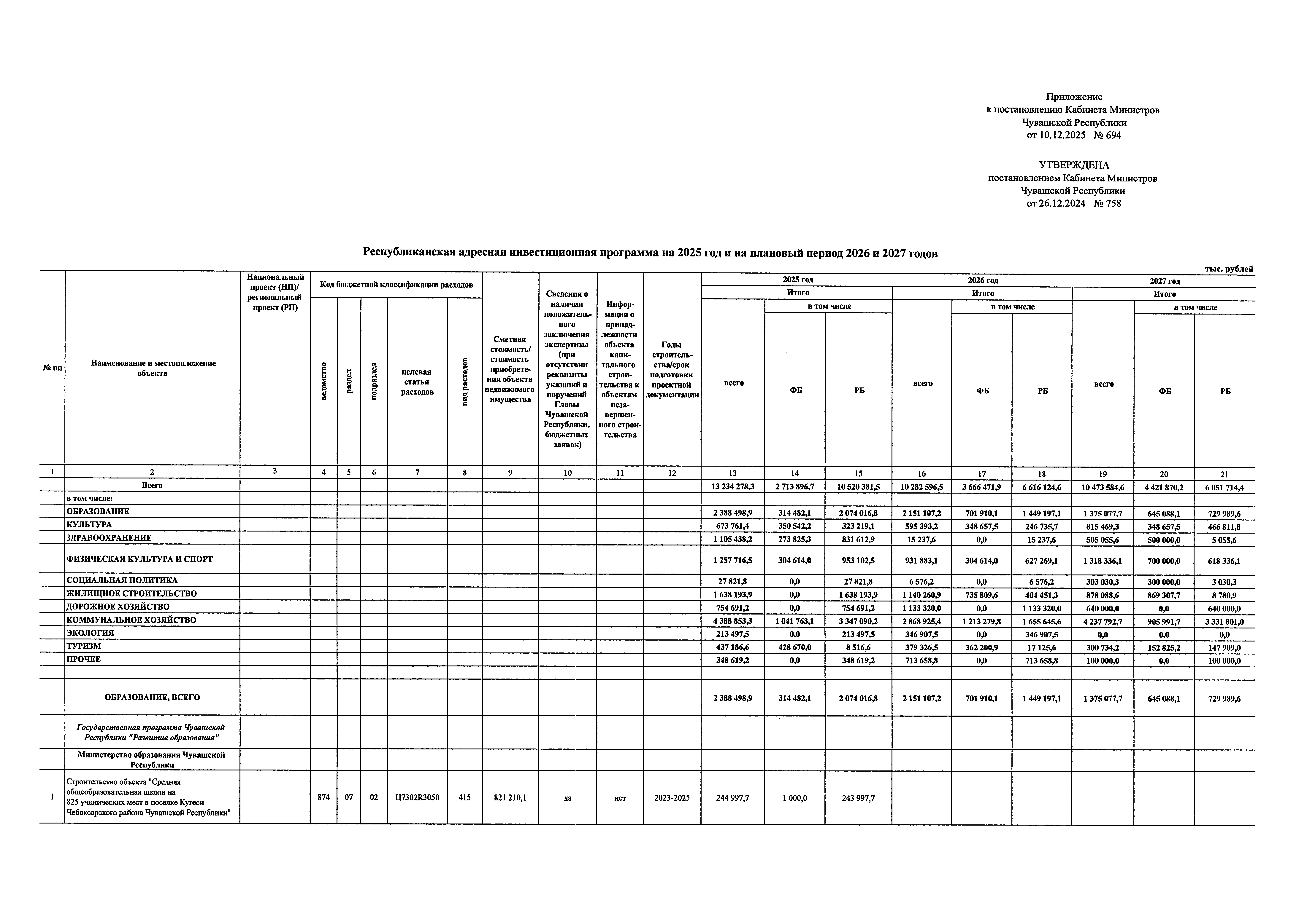 Постановление Кабинета Министров Чувашской Республики от 10.12.2025 № 694