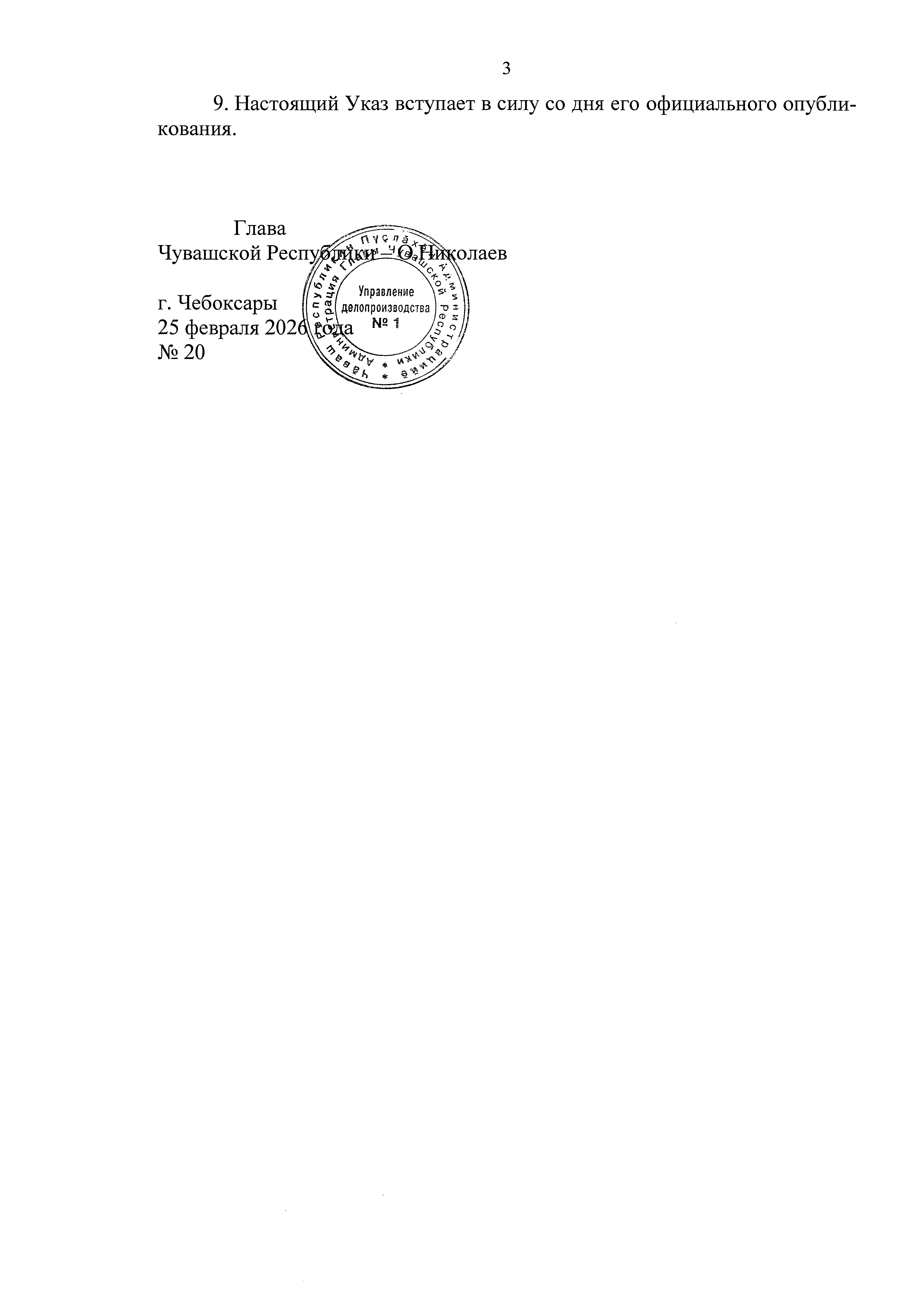 Указ Главы Чувашской Республики от 25.02.2026 № 20