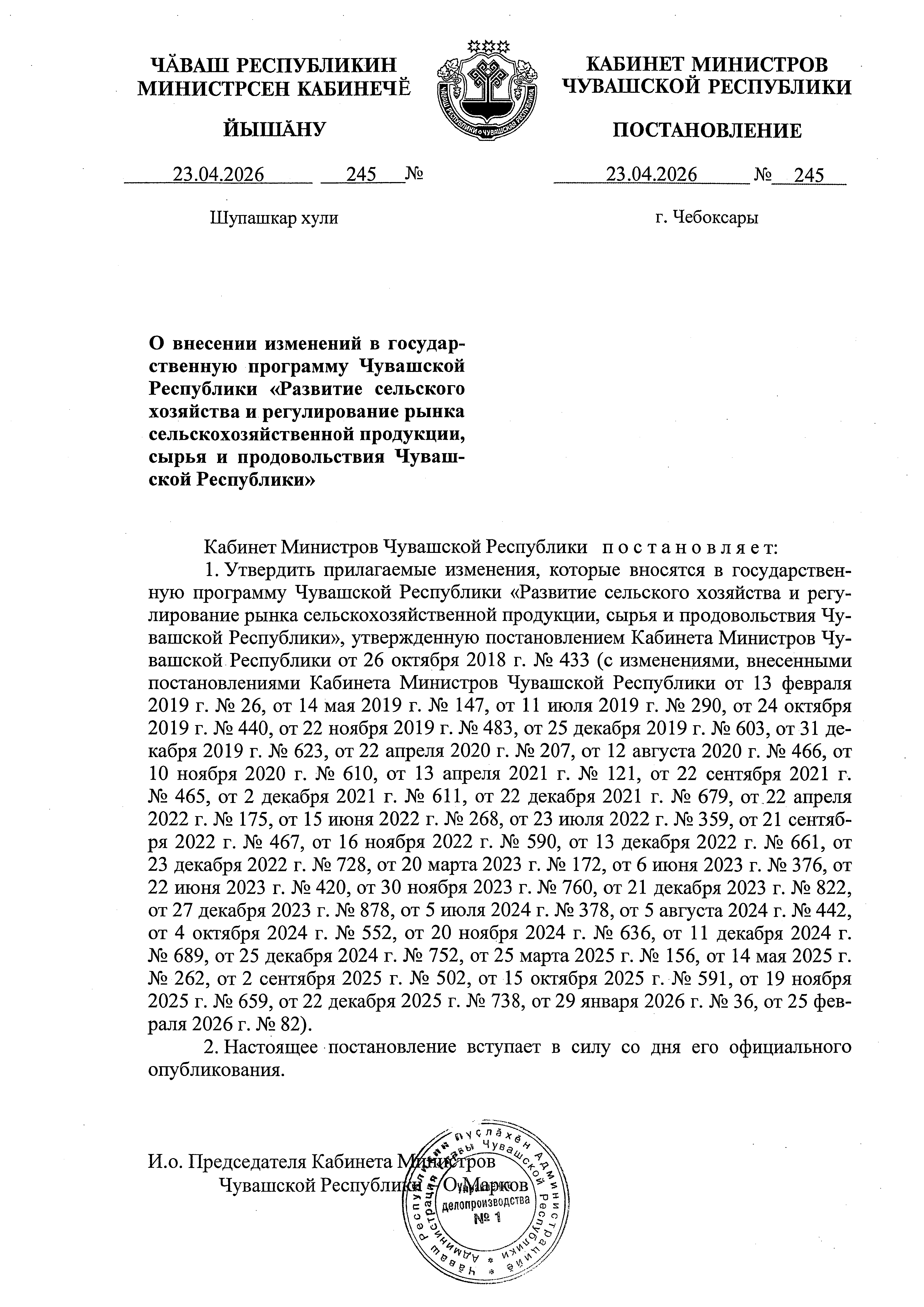 Постановление Кабинета Министров Чувашской Республики от 23.04.2026 № 245