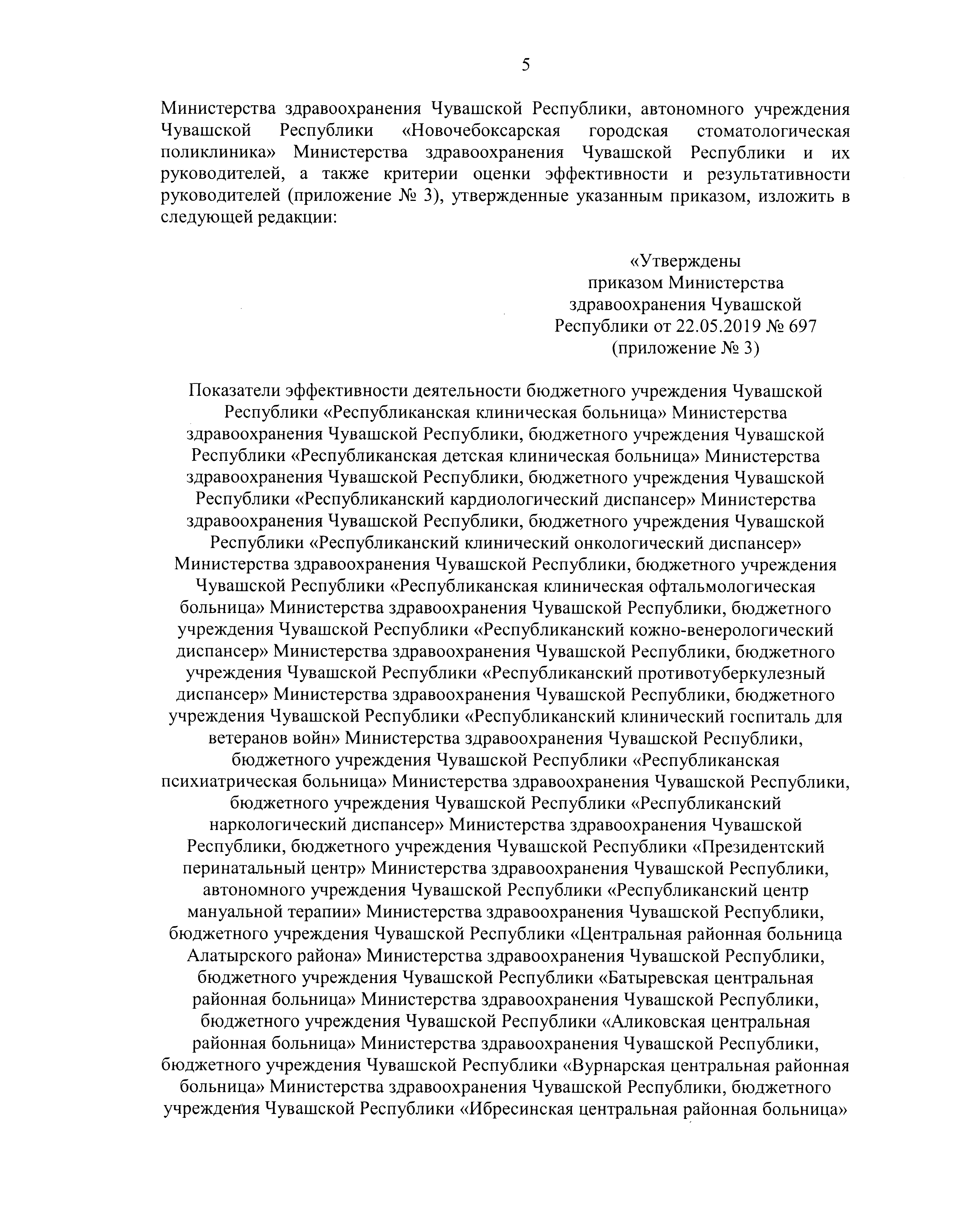 "О внесении изменений в приказ Министерства здравоохранения Чувашской Республики от 22 мая 2019 г. № 697"