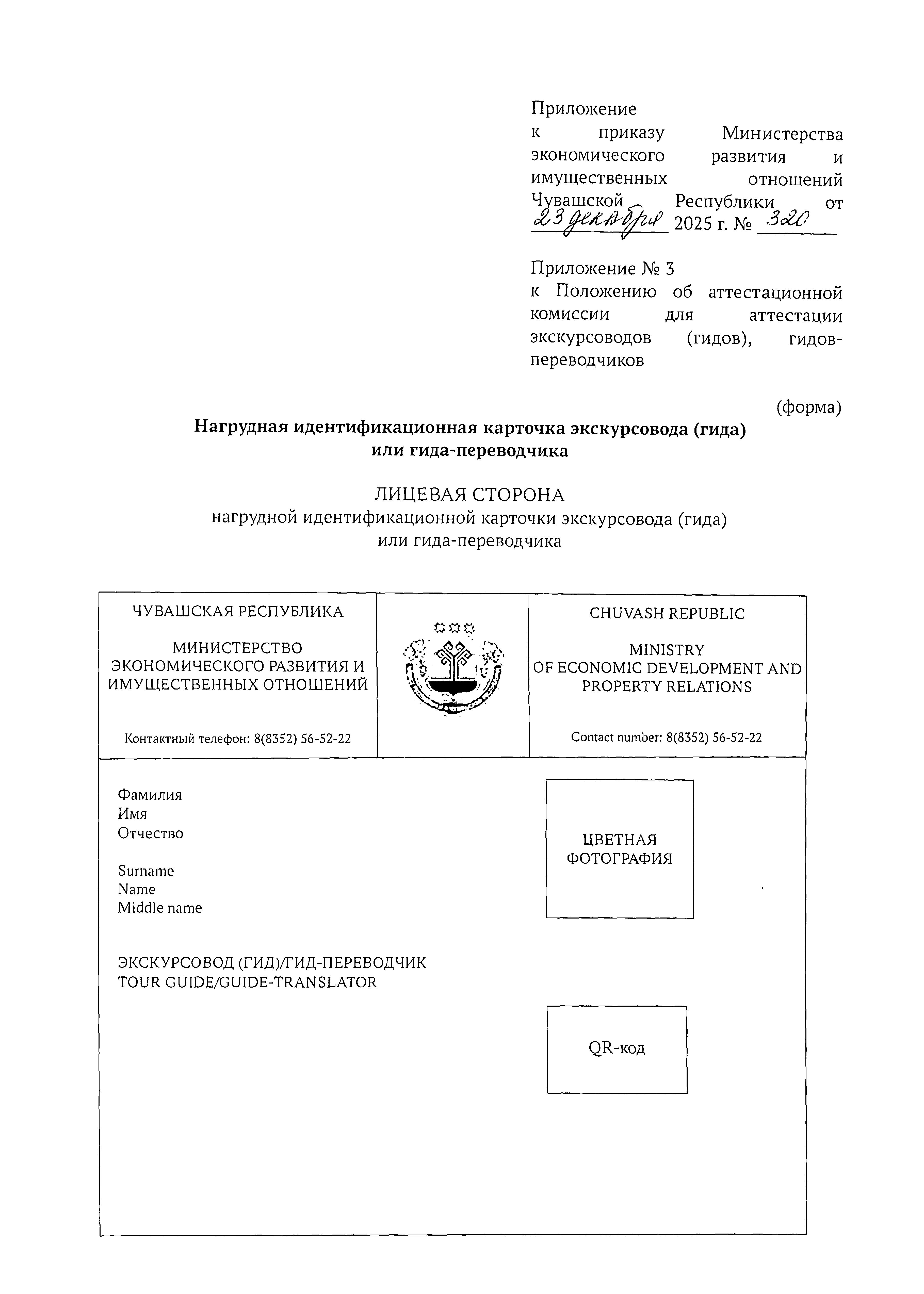 Приказ Министерства экономического развития и имущественных отношений Чувашской Республики от 23.12.2025 № 320