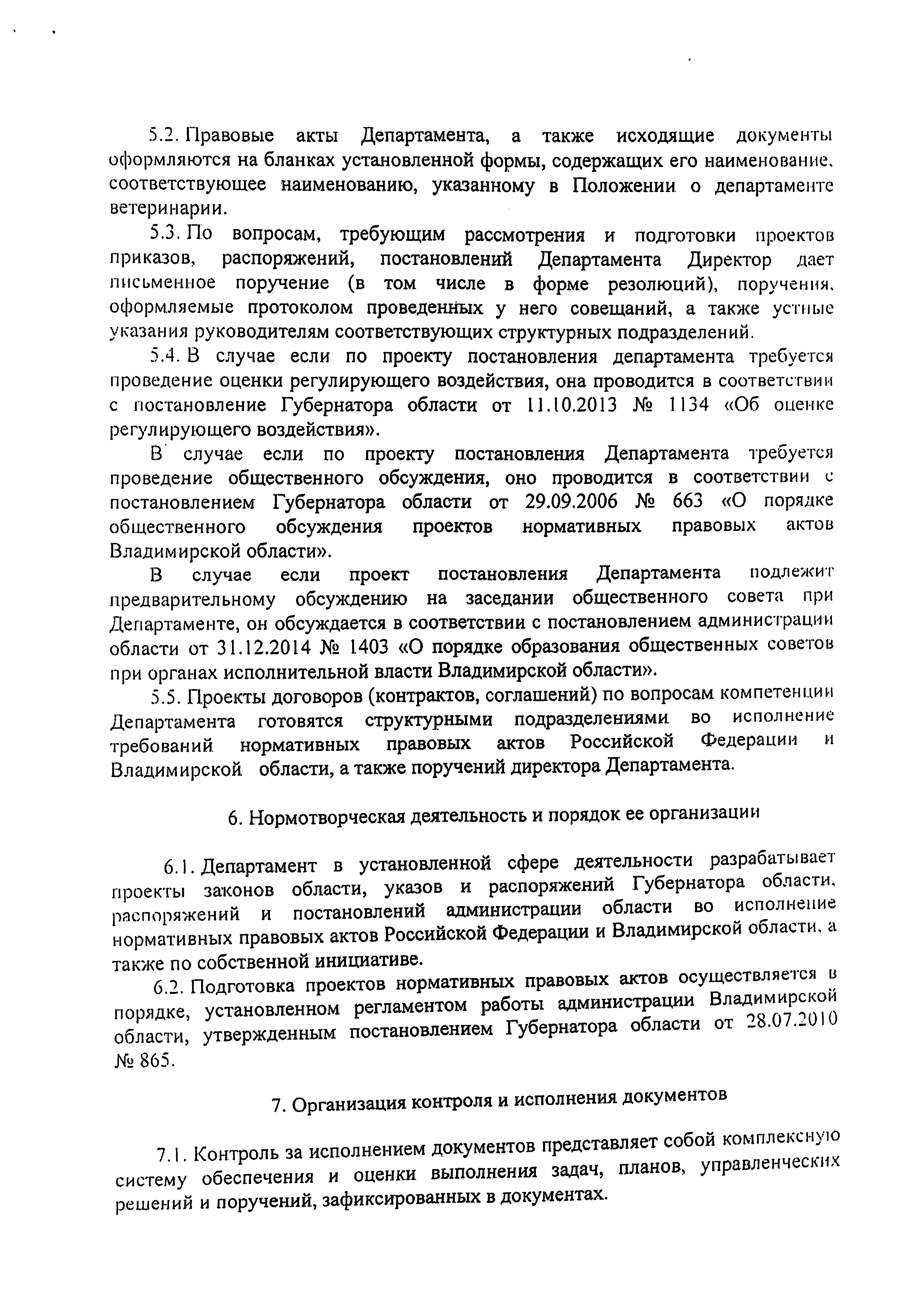 "Об утверждении регламента организации деятельности департамента ветеринарии администрации Владимирской области"
