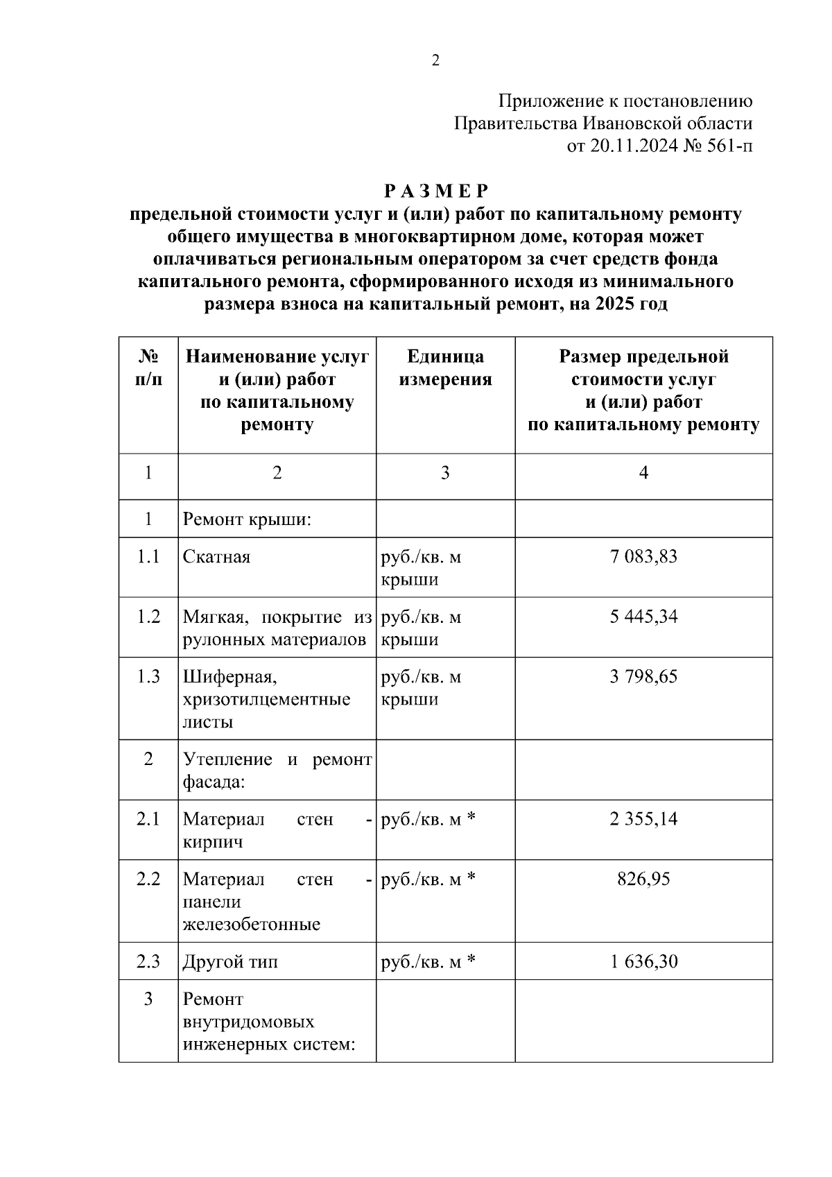 "Об установлении размера предельной стоимости услуг и (или) работ по капитальному ремонту общего имущества в многоквартирном доме, которая может оплачиваться региональным оператором за счет средств фонда капитального ремонта, сформированного исходя из минимального размера взноса на капитальный ремонт, на 2025 год"