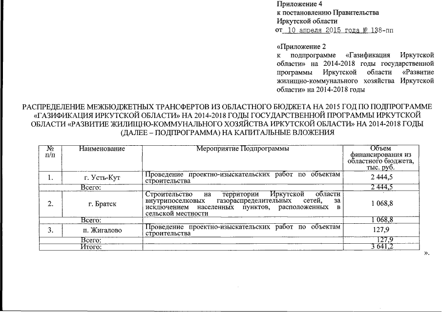 Постановление Правительства Иркутской области от 10.04.2015 № 138-пп