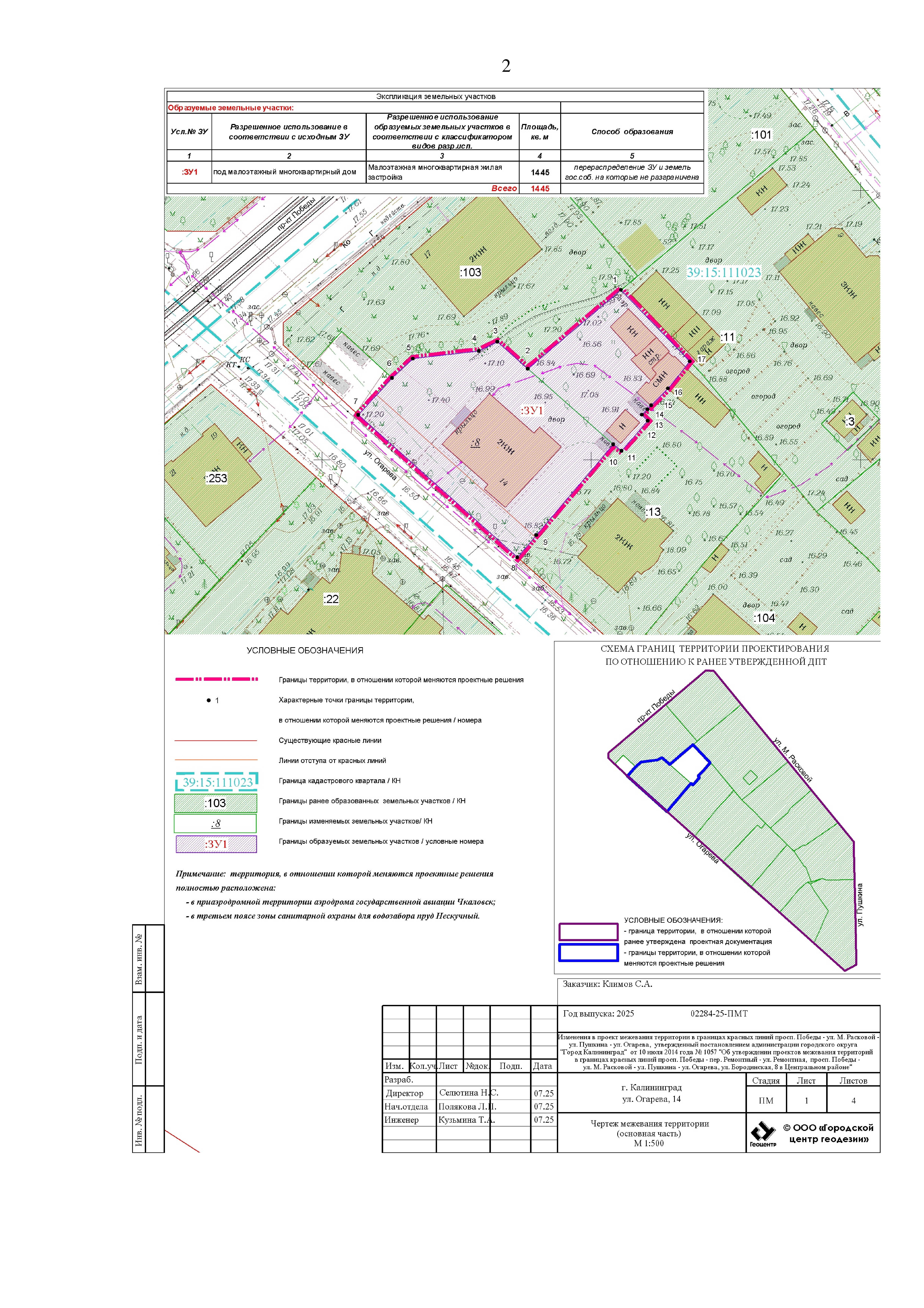 "Об утверждении изменений в проект межевания территории, утвержденный постановлением администрации городского округа "Город Калининград" от 10 июля 2014 года № 1057"