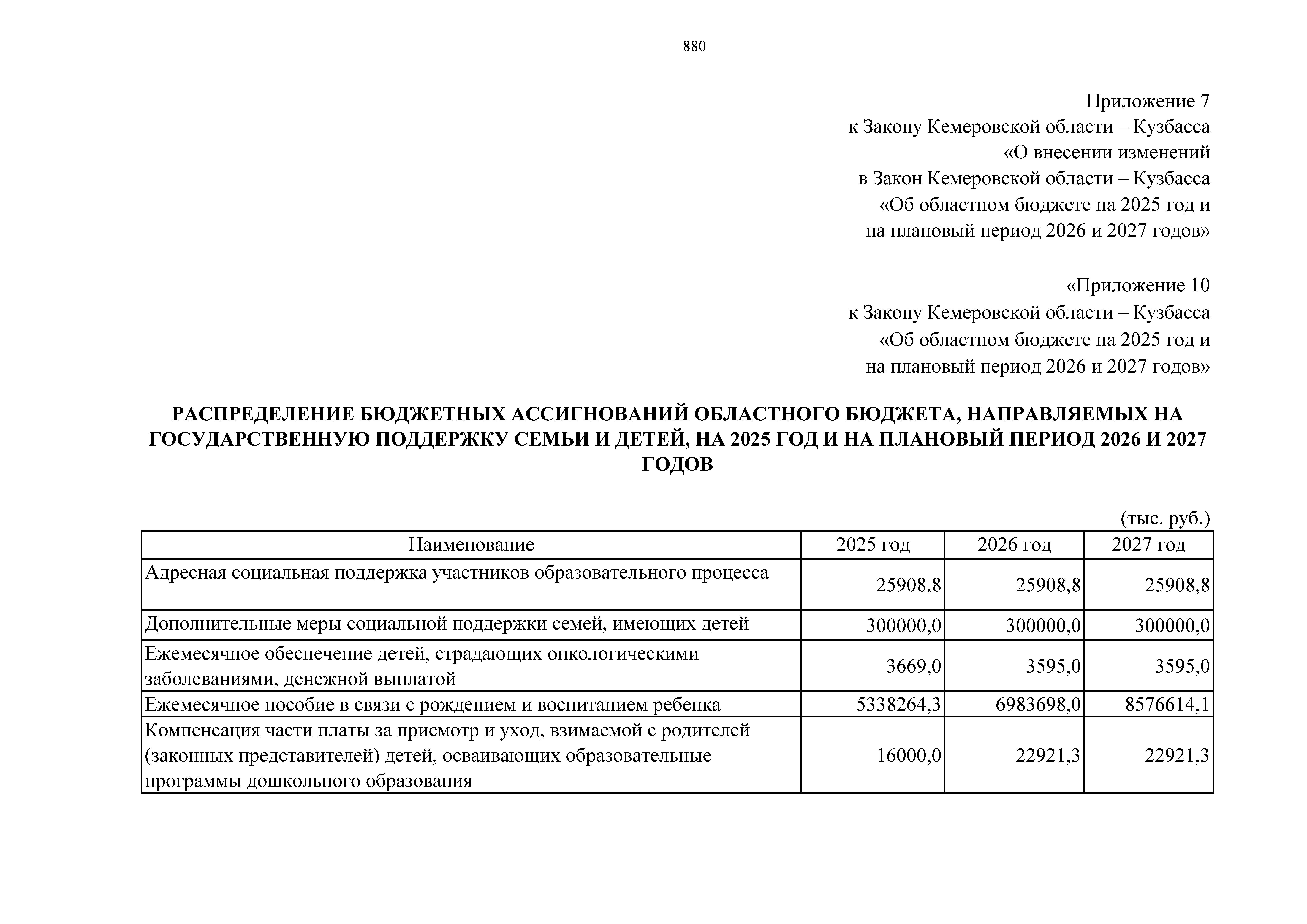 "О внесении изменений в Закон Кемеровской области – Кузбасса "Об областном бюджете на 2025 год и на плановый период 2026 и 2027 годов"