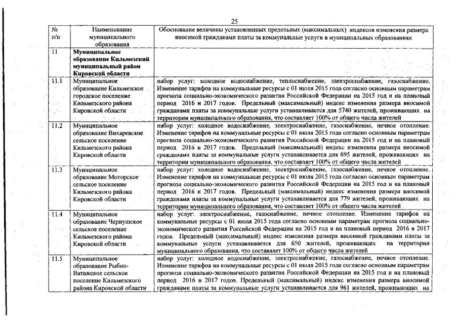 "Об утверждении предельных (максимальных) индексов изменения размера вносимой гражданами платы за коммунальные услуги в муниципальных образованиях Кировской области на период с 01 января 2015 года по 31 декабря 2018 года"