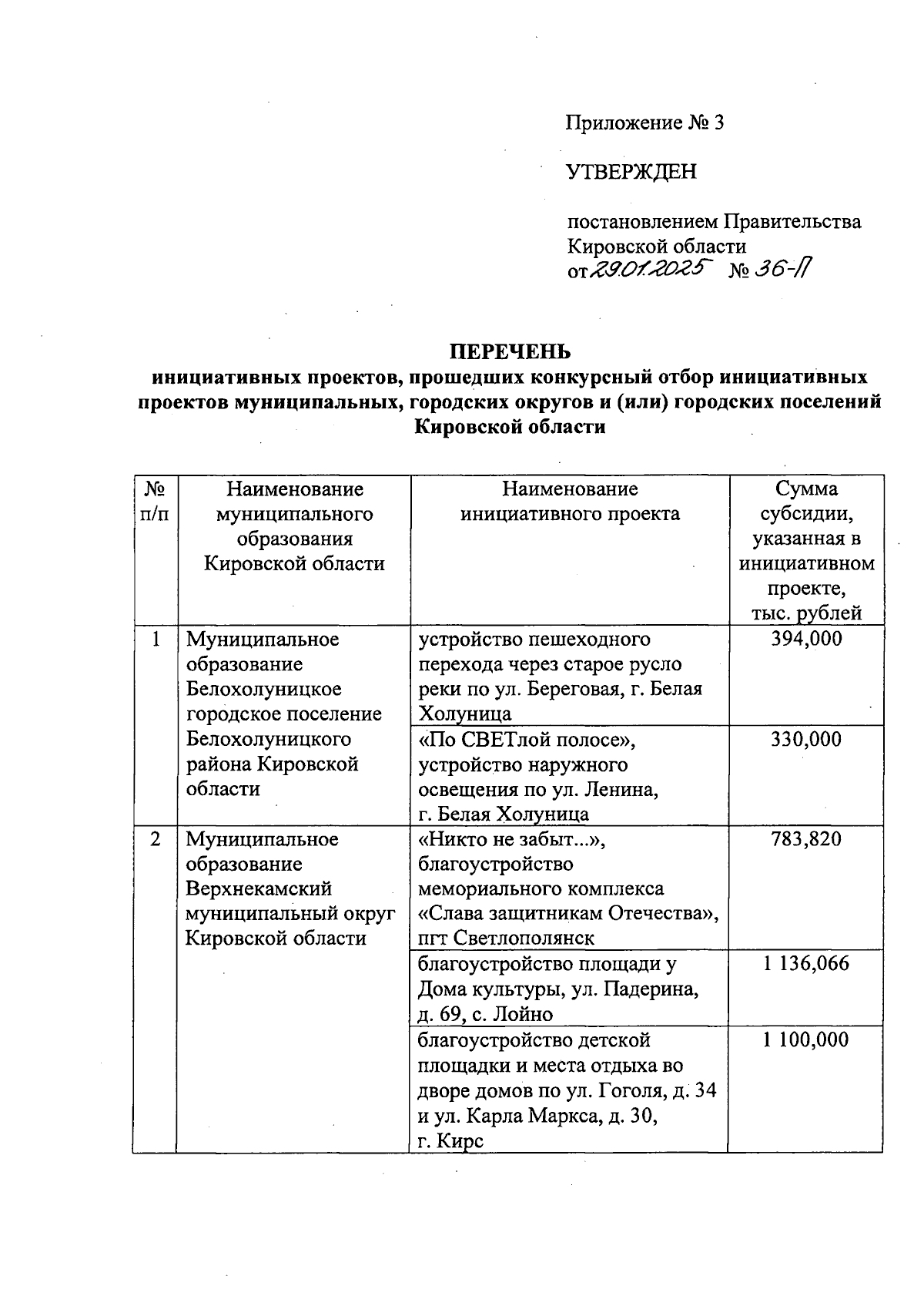 Постановление Правительства Кировской области от 29.01.2025 № 36-П