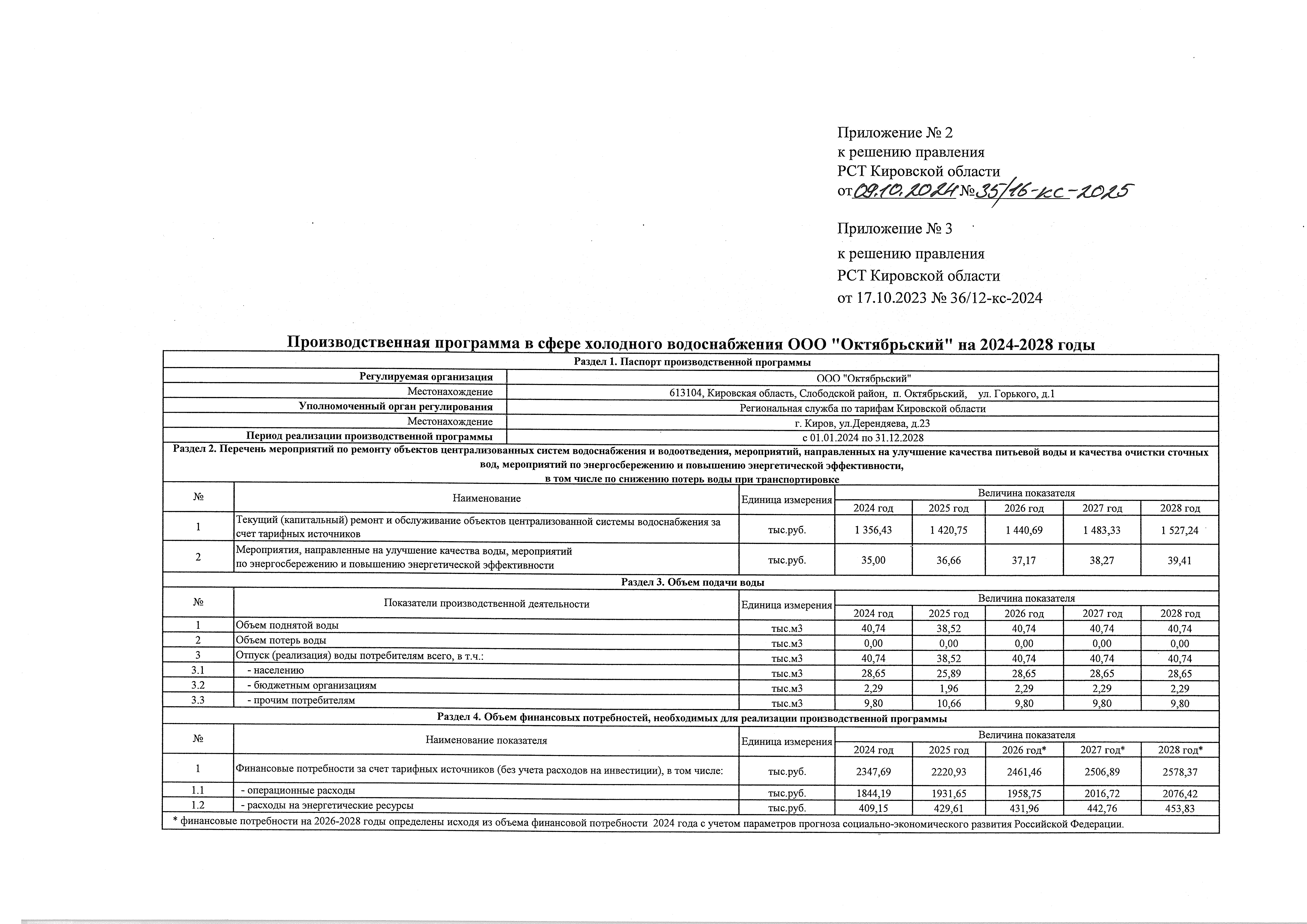 Решение правления региональной службы по тарифам Кировской области от 09.10.2024 № 35/16-кс-2025