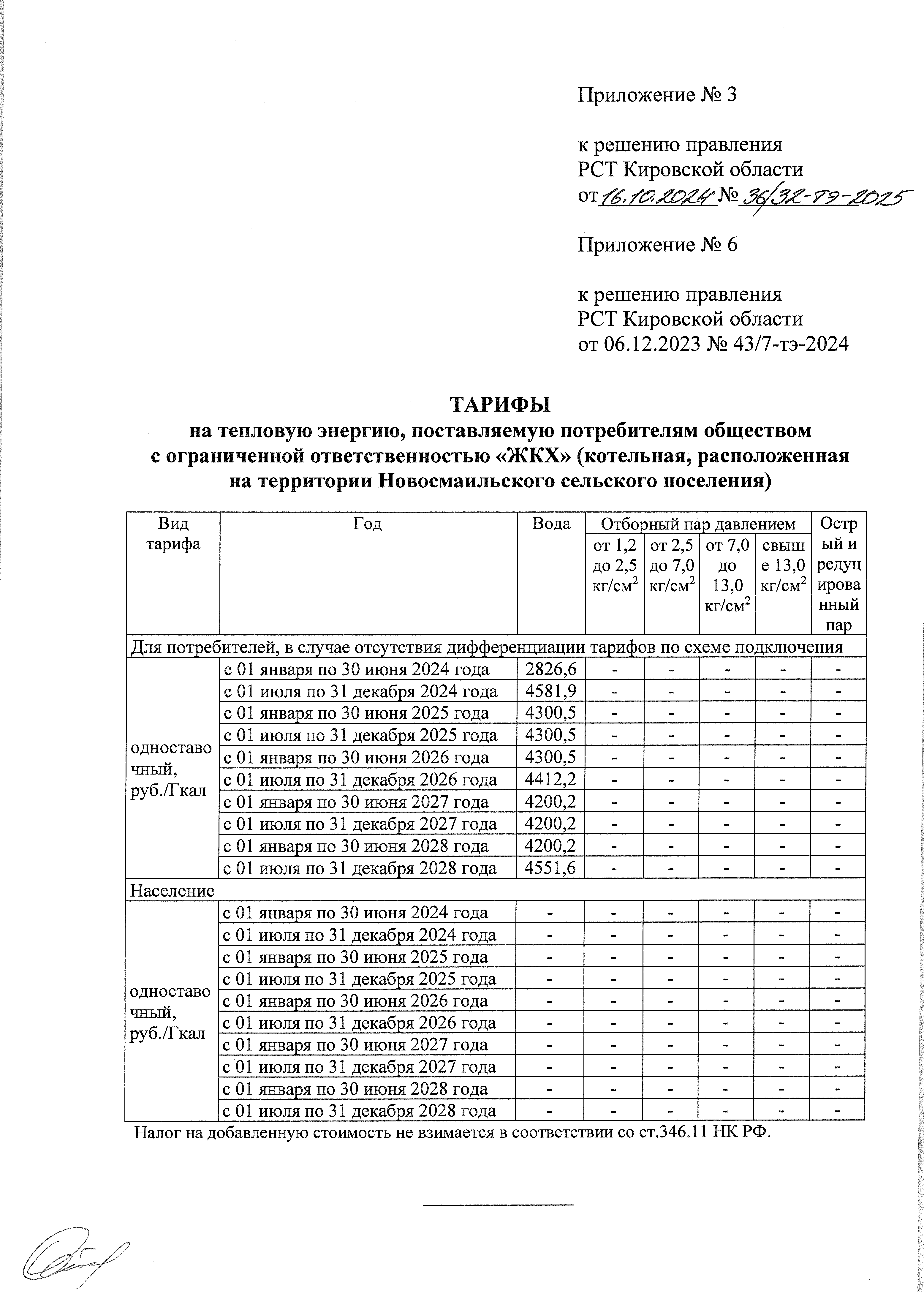 Решение правления региональной службы по тарифам Кировской области от 16.10.2024 № 36/32-тэ-2025