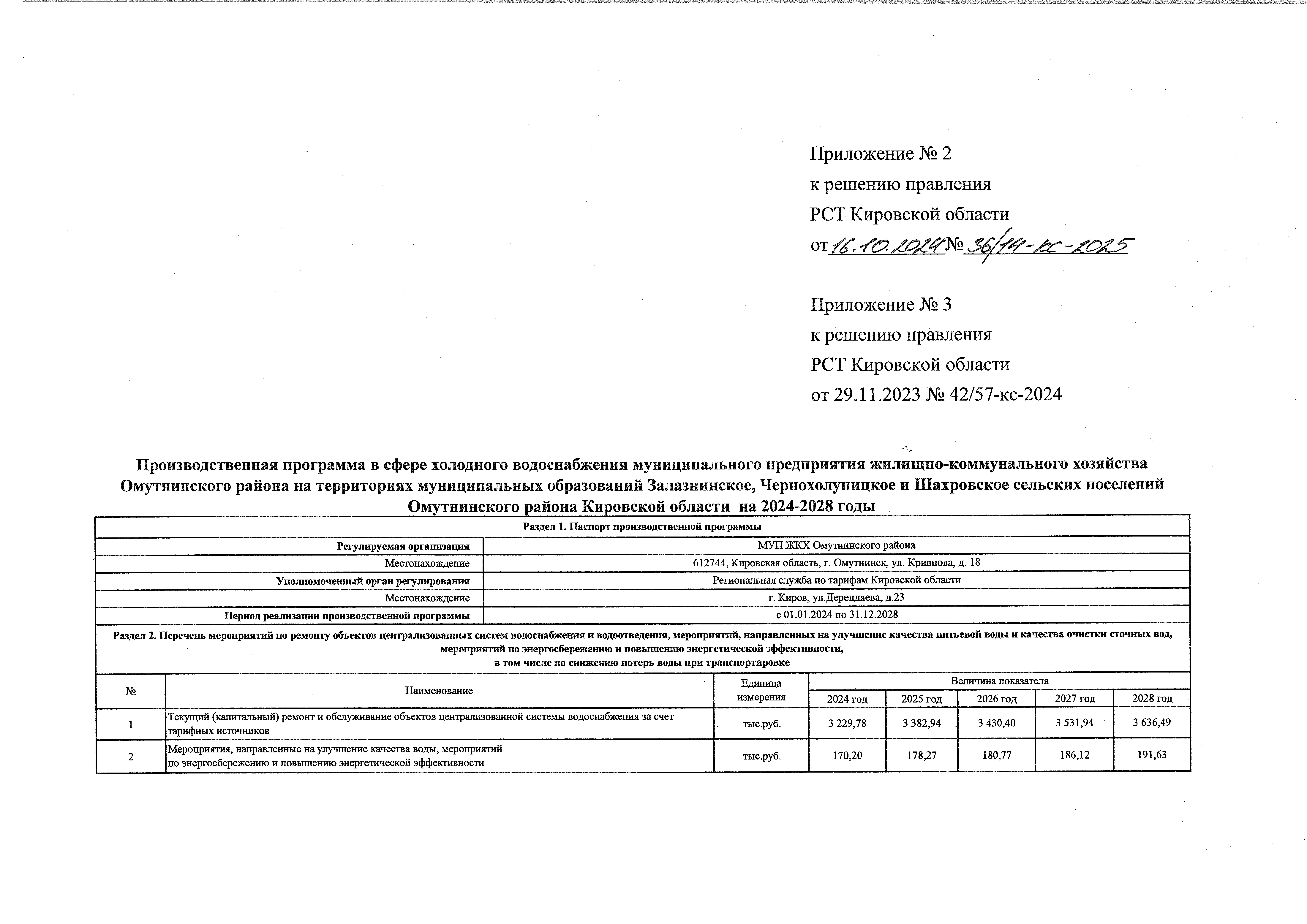 Решение правления региональной службы по тарифам Кировской области от 16.10.2024 № 36/14-кс-2025