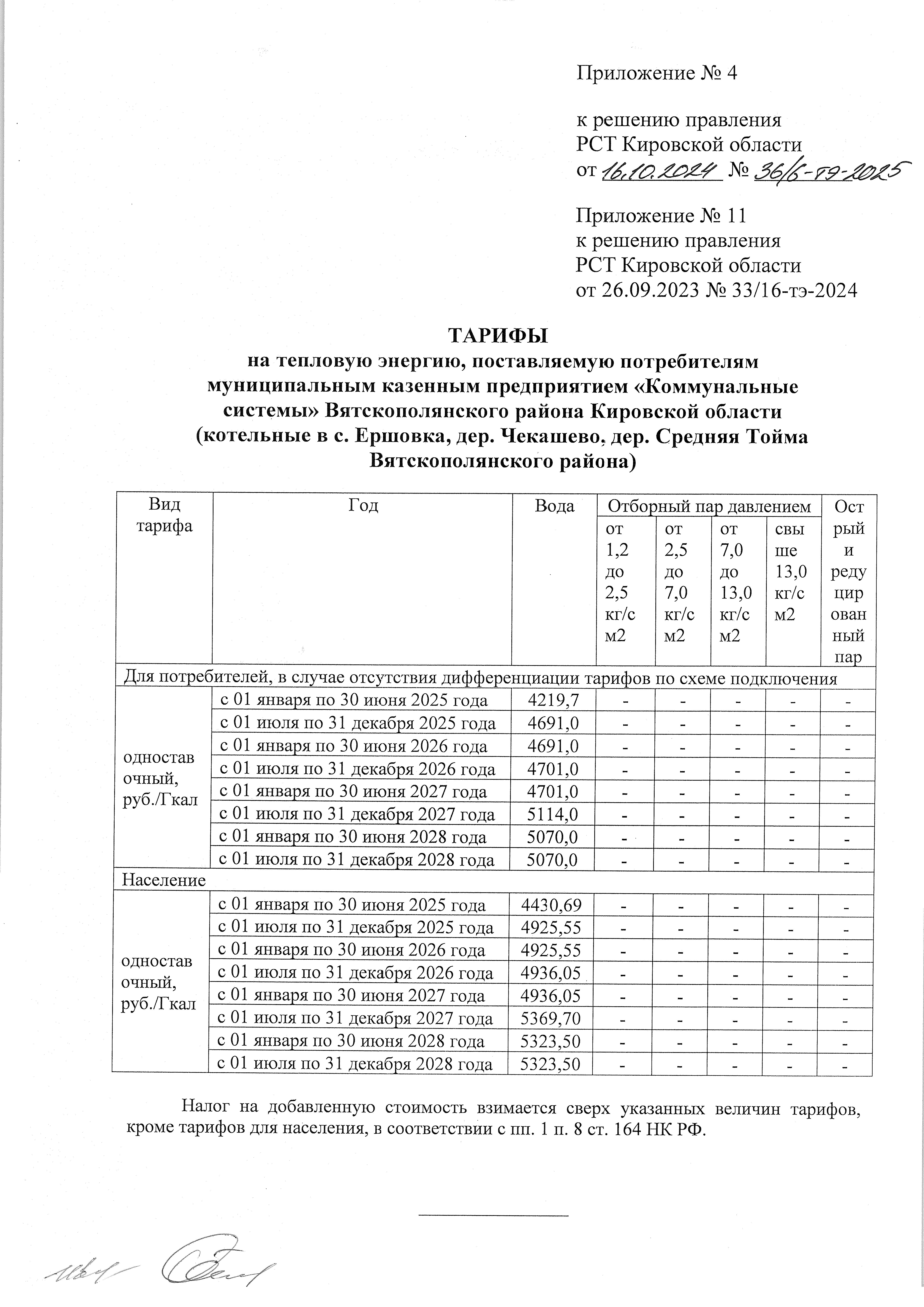 Решение правления региональной службы по тарифам Кировской области от 16.10.2024 № 36/6-тэ-2025