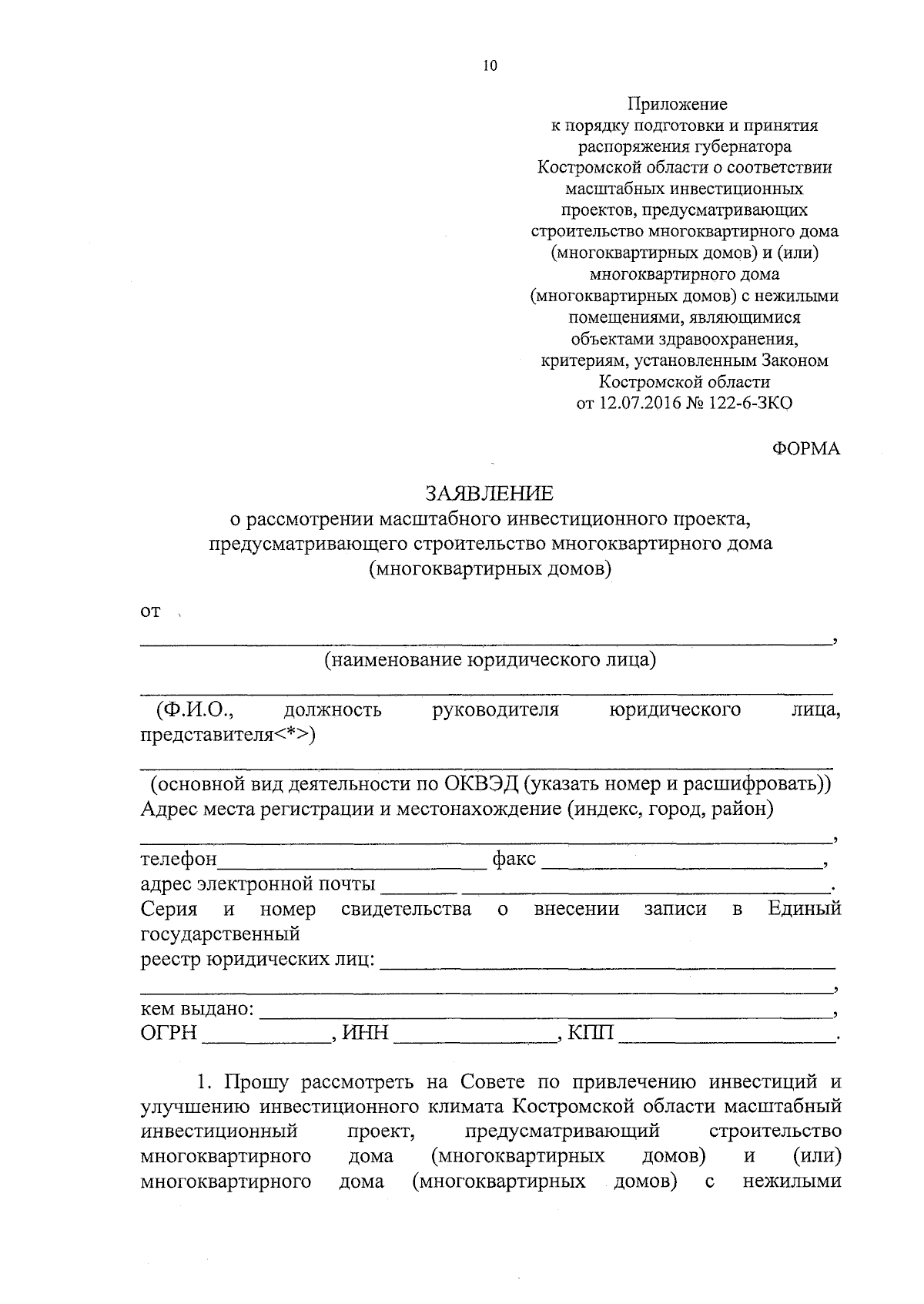 "О внесении изменений в порядок подготовки и принятия распоряжения о соответствии объектов, масштабных инвестиционных проектов критериям, установленным Законом Костромской области от 12.06.2016 № 122-6-ЗКО"