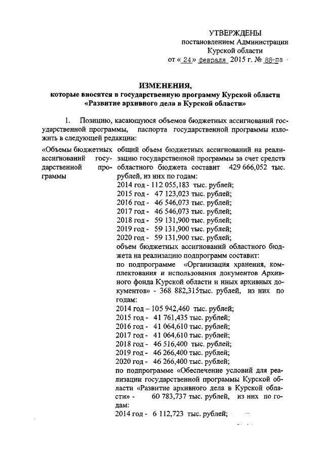 Постановление Администрации Курской области от 24.02.2015 № 88-па