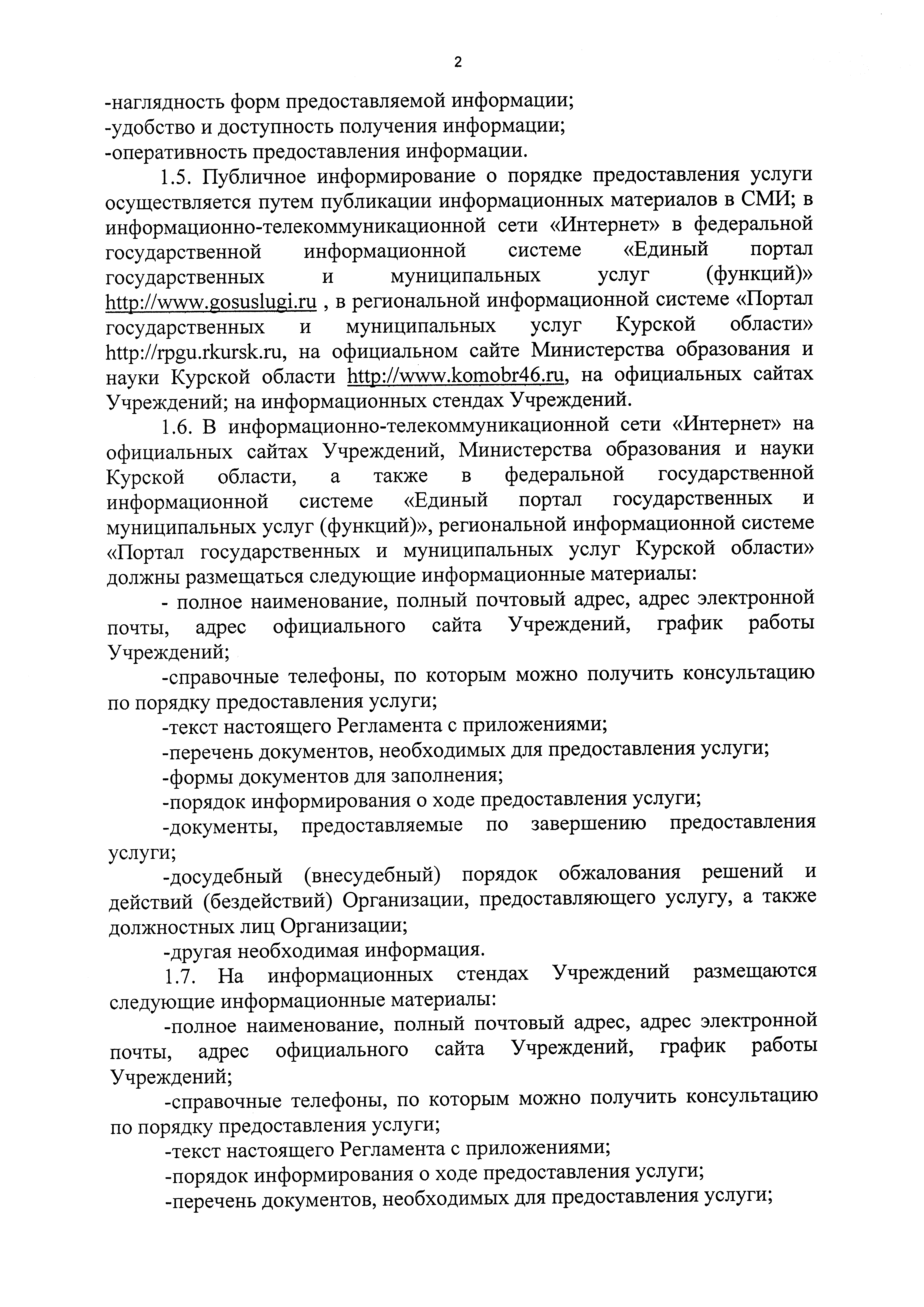 "Об утверждении регламента предоставления услуги "Предоставление информации об образовательных программах и учебных планах, рабочих программах учебных курсов, предметов, дисциплин (модулей), годовых календарных учебных графиках" образовательными организациями, подведомственными Министерству образования и науки Курской области"