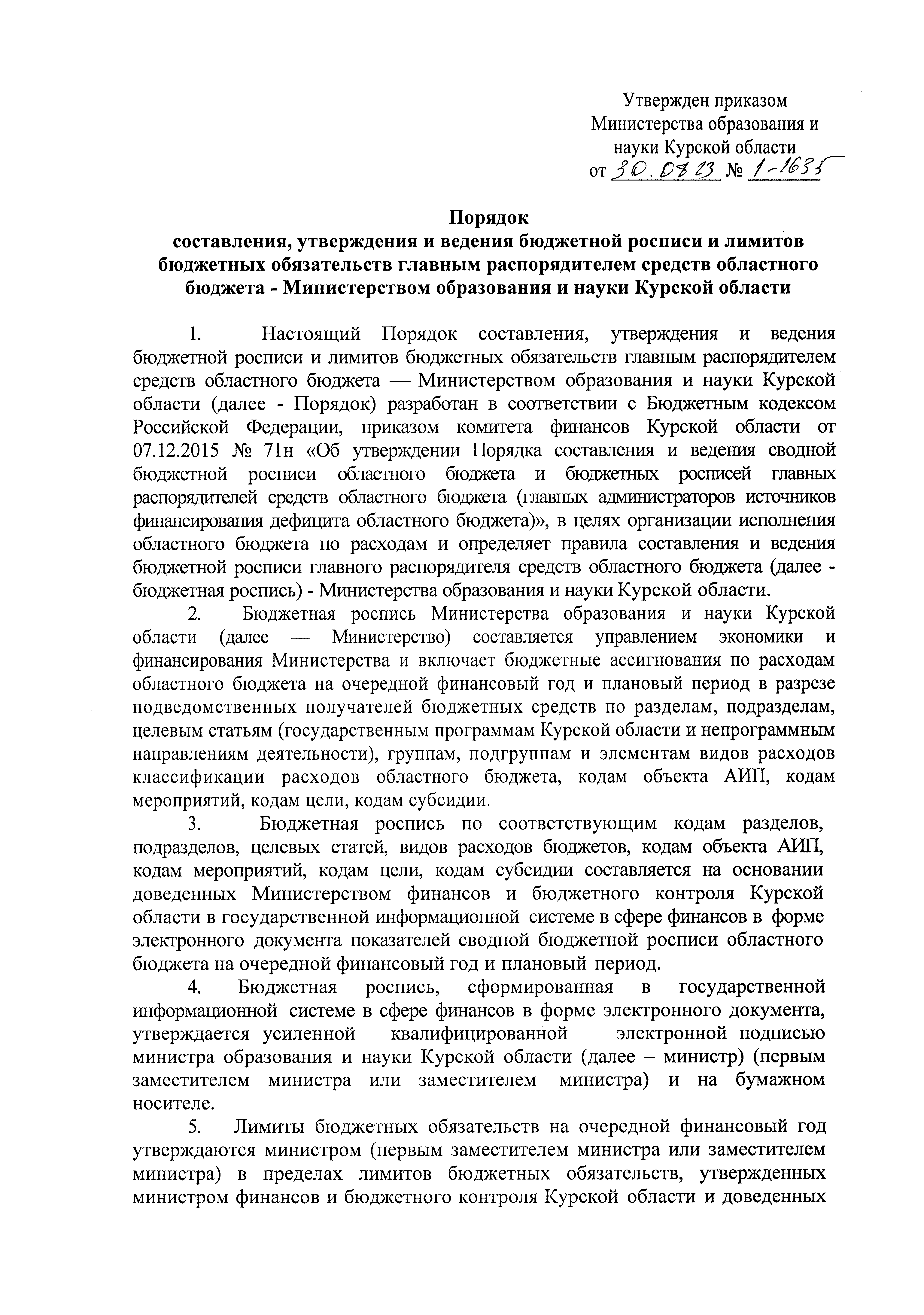 Приказ Министерства образования и науки Курской области от 30.08.2023 № 1-1635
